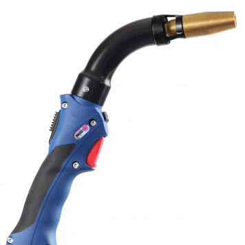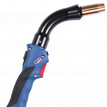 Deshalb eignen sich für Schweißbrenner mit Punktabsaugung am besten Brennerhals-Biegewinkel von 45 und 60 Grad. Sie bieten zwei Vorteile: Durch die relativ senkrechte Schweißposition über dem Prozess werden Rauchgase optimal aufgenommen. Darüber hinaus arbeitet der Schweißer ergonomisch, das Handling fällt leichter, Ermüdungserscheinungen treten weniger schnell auf.