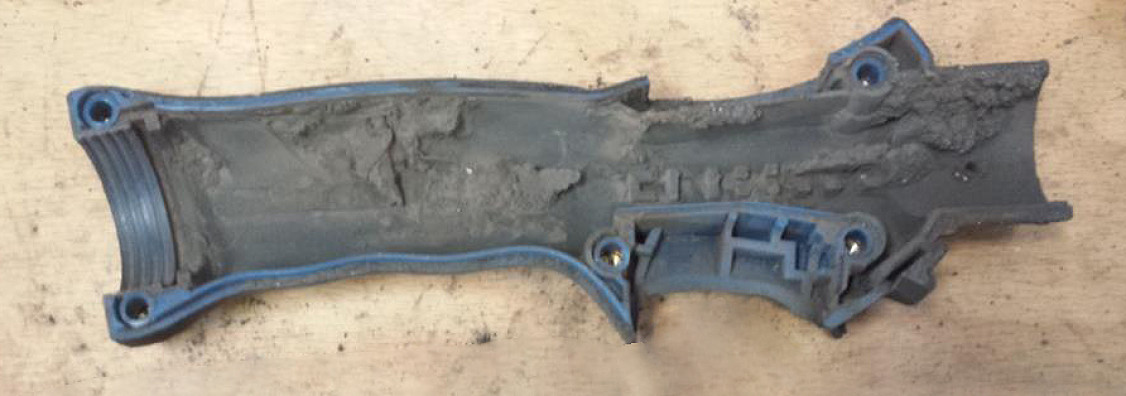 Auch wenn ein Absaugbrenner für Punktabsaugung direkt über dem Prozess positioniert wird, saugt er mehr als nur den reinen Schweißrauch ein. Er erfasst auch Schweißtrennmittel, mit denen die Bauteile vorbehandelt wurden, denn diese verdampfen beim Überschweißen. Die eingesaugten Partikel setzen sich in der Absaugdüse, im Innern des Brennerkopfs und im Schlauchpaket fest. Sie behindern den freien Durchstrom des eingesaugten Schweißrauchs und reduzieren den Absaug-Vakuumdruck. Werden die Ablagerungen größer, wird die Absaugleistung immer schlechter.
