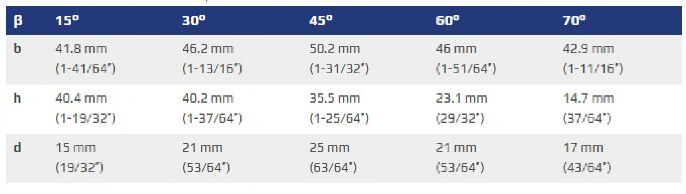The ABM-50 DD Vario offers continuous, stepless bevel angle adjustment from 15° to 70°, enabling users to tailor the bevel geometry according to project requirements. The resulting bevel shape depends on the selected angle (β), bevel height (h), and depth (d).