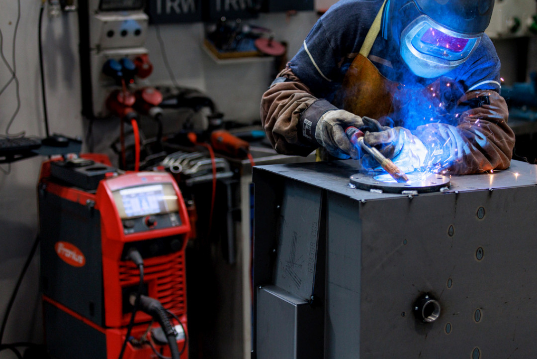 Natürlich spielen auch die Bauteilsicherheit und -qualität eine entscheidende Rolle. Die Expertinnen und Experten bei Knoll wenden deshalb verschiedene Prüfmethoden wie die Farbeindringprüfung (PT – Penetration Testing) zur Kontrolle jedes einzelnen Bauteils an. Sie ist eine schnelle, effektive Methode, die Oberflächenrisse und andere Defekte wie Poren sichtbar macht. Auch für komplexe Geometrien geeignet, kann sie an Werkstücken aller Größen durchgeführt werden. Selbst kleine, mit bloßem Auge nicht sichtbare Fehler können mit der PT erkannt und anschließend von der Schweißfachkraft behoben werden.