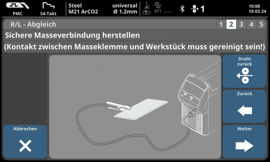 Die Menüführung ist in über 30 Sprachen verfügbar. Bedenkt man, dass Knoll wegen des stets größer werdenden Fachkräftemangels in Deutschland immer mehr Schweißprofis aus verschiedenen Ländern einsetzt, sind „Native-Speaker-Schweißgeräte“ äußerst hilfreich. Das Display des Schweißgeräts ist nicht nur mehrsprachig, es spricht sogar Klartext. Detaillierte Beschreibungen und grafische Animationen leiten Schweißfachkräfte Schritt für Schritt an – zum Beispiel beim Widerstandsabgleich.