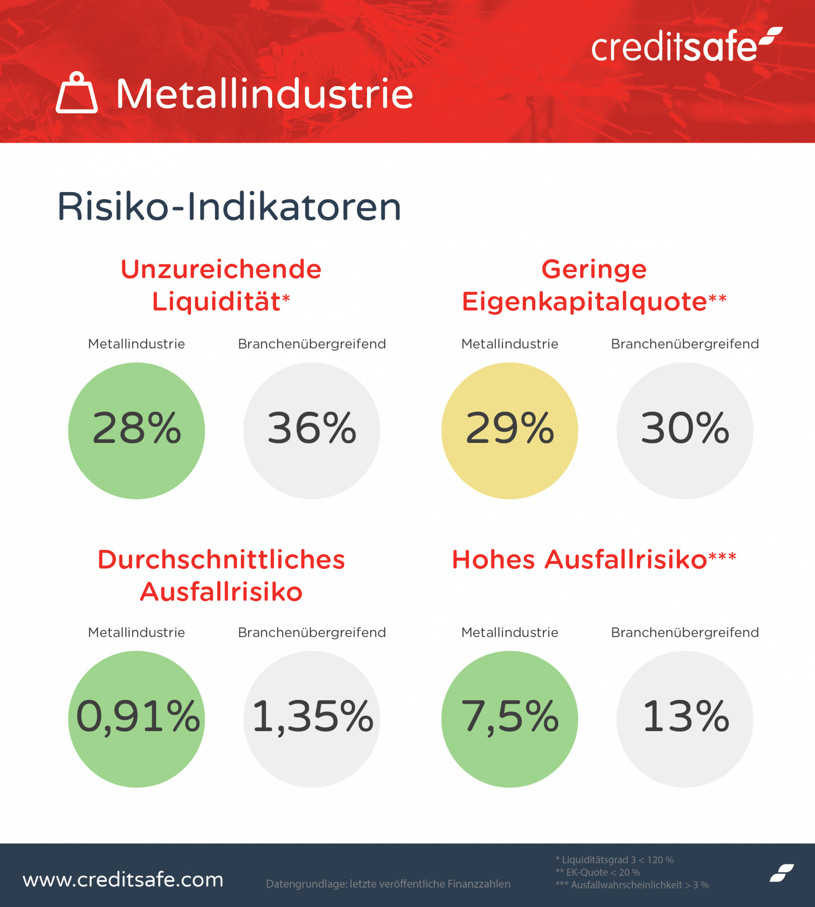 Ausfallrisiko: Gefahr einer Firmenpleite in der Metallindustrie vergleichsweise niedrig