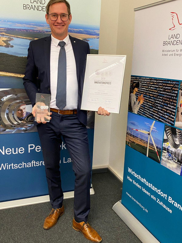 Der Auszeichnung vorausgegangen ist die Bewerbung mit anschließender Juryauswertung und Pitch-Präsentation durch Dr. Michael Schnick, Geschäftsführer der Kjellberg-Holding Teknoholt GmbH. Er begleitet das Projekt von Beginn an und konnte der Fachjury eindrucksvoll die Vorteile der Q als intelligente Plasmaschneidanlage für die digitalisierte Produktion erläutern und so letztlich überzeugen. Voller Stolz nahm er am 12. November den Brandenburger Innovationspreis 2020 vom Brandenburgischen Wirtschaftsminister Prof. Dr.-Ing. Jörg Steinbach entgegen. Die Preisübergabe erfolgte im Rahmen der virtuellen Clusterkonferenz Metall.