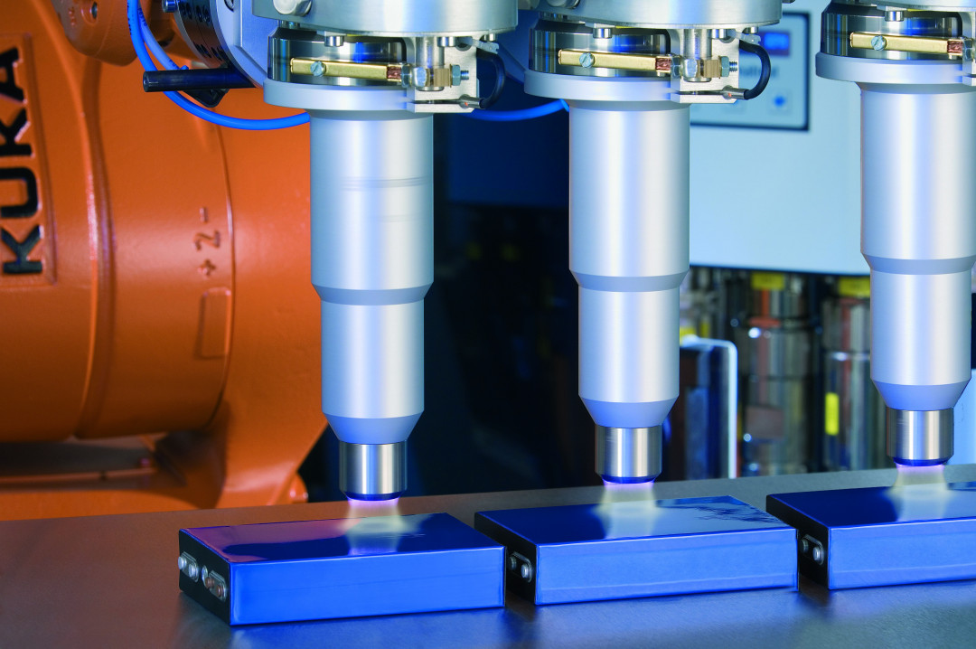 Auf dem Weg von der einzelnen Zelle hin zu Batteriemodulen und -packs kommt die Openair-Plasma-Technik von Plasmatreat in einer Vielzahl von Anwendungen zum Einsatz. So muss die Aluminiumoberfläche vor der (Isolations-)Verklebung der einzelnen Zellen untereinander optimal gereinigt und aktiviert werden, damit es später über die gesamte Lebensdauer hinweg zu keinen Ausfällen durch überhitzte Zellen kommt. Auch bei der elektrischen Kontaktierung ist absolute Partikelfreiheit zwingend erforderlich.