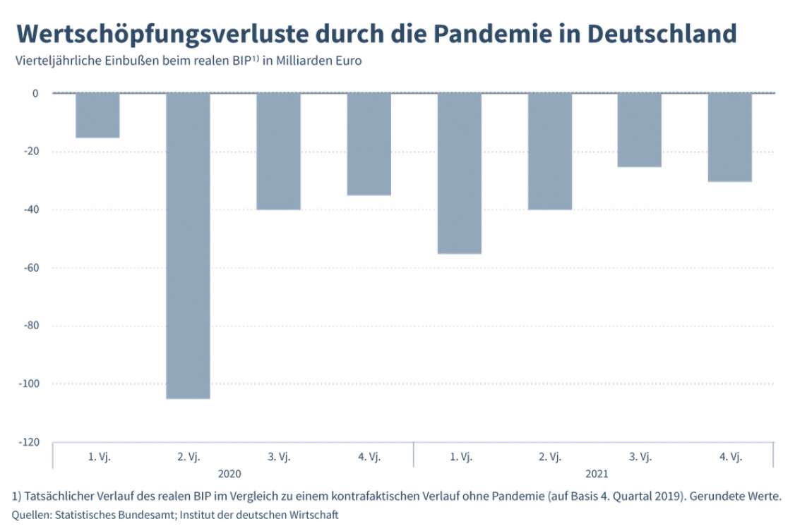 IW-Studie: Corona kostete deutsche Wirtschaft bisher 350 Mrd. Euro Wertschöpfung