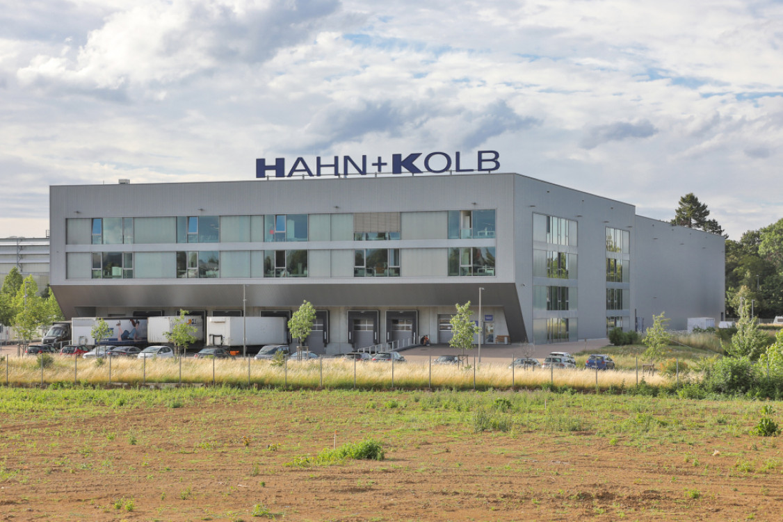 Mit der Entscheidung zum Standortwechsel nach Ludwigsburg hat HAHN+KOLB 2013 die Weichen für den weiteren Erfolg richtig gestellt. Nach 115 Jahren wechselte das Unternehmen von Stuttgart auf das 48.000 m2 große neue Gelände mit mehr Wachstumsmöglichkeiten – und investierte von Anfang an in modernste Technik. So entstand neben dem neuen Logistikzentrum zugleich das innovative Vertriebszentrum mit viel Platz für die 320 Mitarbeitenden. Dazu beherbergt es eine Akademie und ein Technologiezentrum sowie ein Restaurant samt Lounge. Großflächige Glaselemente und ein Lichthof im Gebäudekern gewährleisten helle Arbeitsplätze und eine natürliche Belüftung. Mit seinen beiden um 45 Grad geneigten Fassaden verfügt das Gebäude zudem über große Flächen für Photovoltaikelemente zur CO2-freien