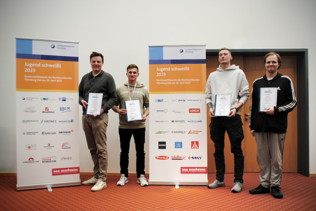 Alle vier Gewinner qualifizieren sich für den nächsten Wettbewerb der DVS-Bezirksverbände auf norddeutscher Ebene vom 30.06. – 02.07.2023 in Flensburg.