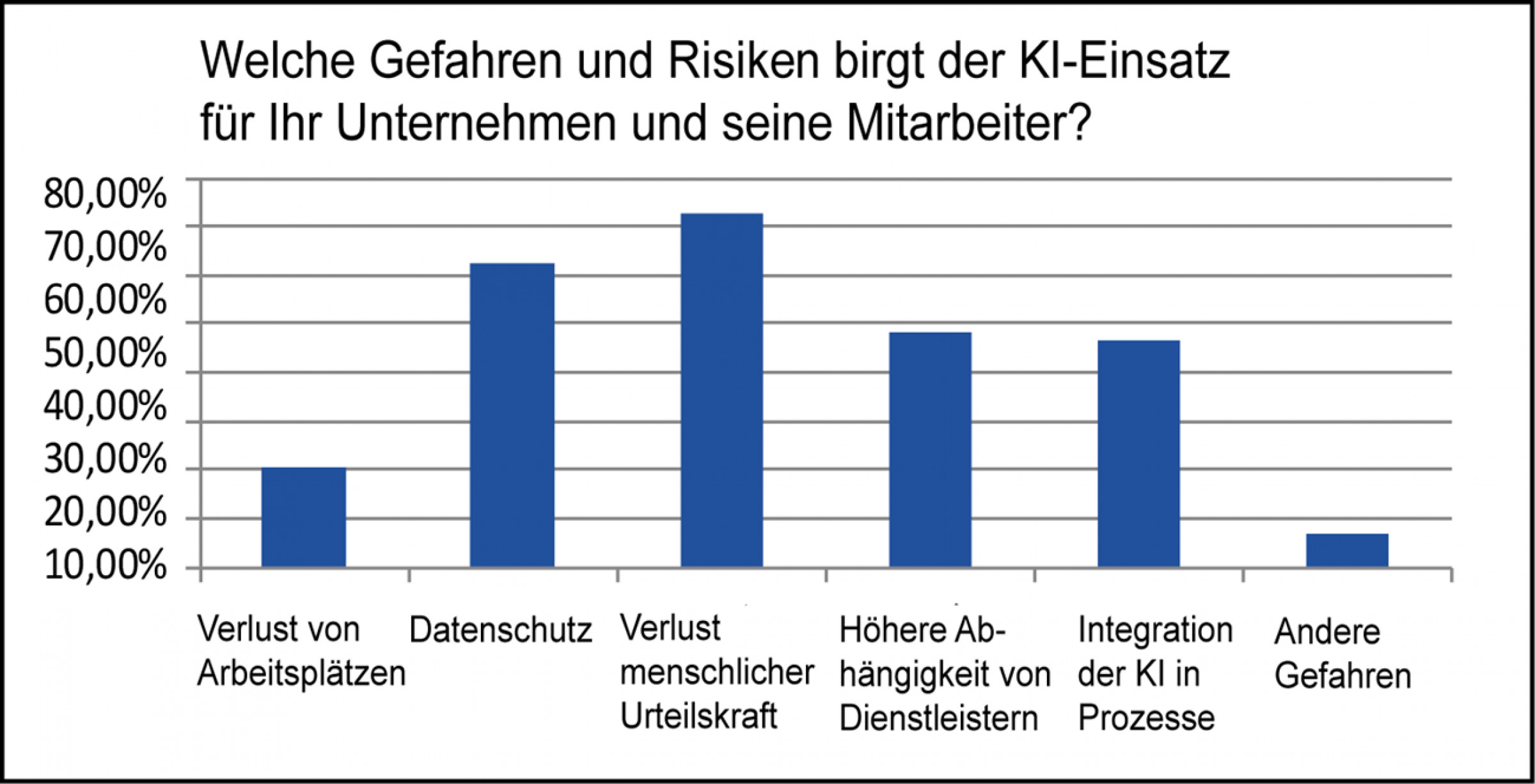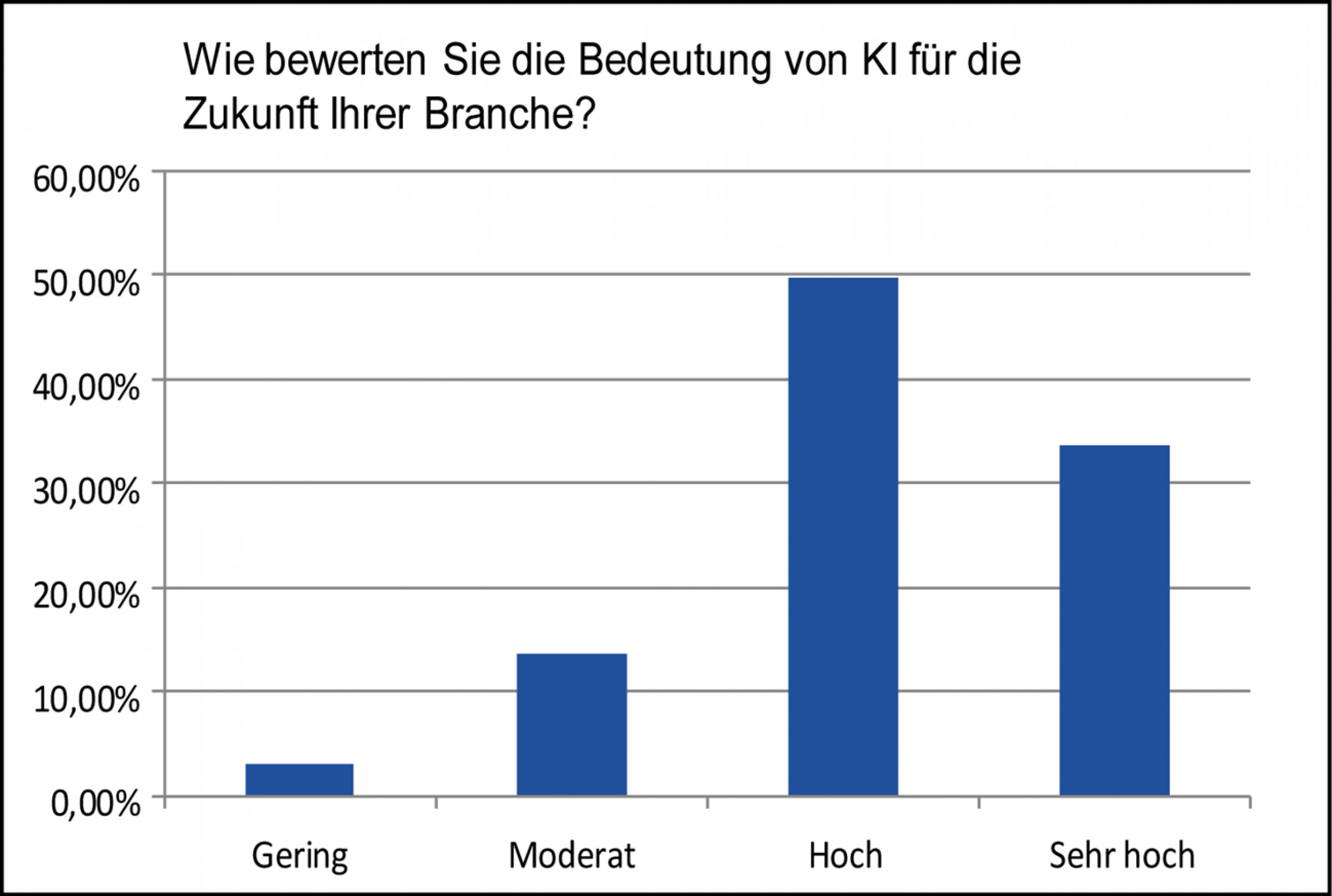 Auffallend war, dass dieses Bedrohungsgefühl am ausgeprägten bei den Führungskräften in den Bereichen Marketing, Vertrieb und Unterkommunikation ist, in denen KI-Tools bereits überproportional stark genutzt werden; außerdem in solchen Stabsabteilungen wie Finanzen und Controlling, in denen eine Vielzahl von Daten zu erfassen und verarbeiten sind. Die Führungskräfte in der Produktion hingegen äußerten solche Bedenken nicht. Sie verwiesen eher darauf, dass ein möglicher KI-Einsatz ihnen mittelfristig eventuell sogar helfen könne, das Problem Fachkräftemangel zu lösen.