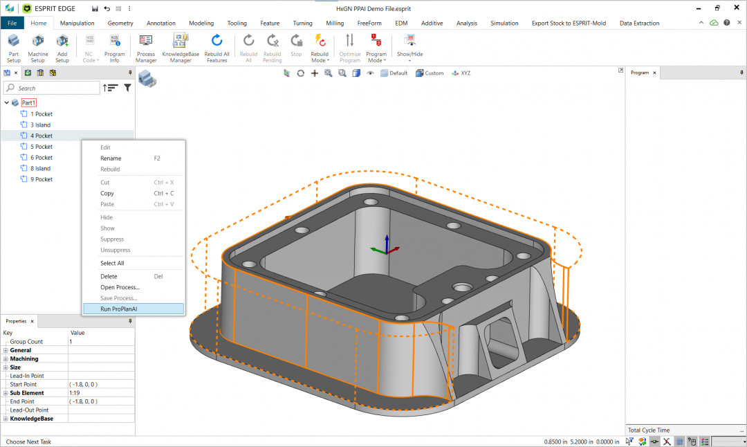 ProPlanAI wird auch einen Co-Piloten enthalten, der Menschen durch den Prozess der Einrichtung einer Maschine führen und ihnen funktionierende Programme vorstellen kann. Dazu gehört Support und Anleitung – zum Beispiel Tipps zur Verwendung der Software, Prozesse zur Herstellung eines bestimmten Teils und die beste Bearbeitungsstrategie. Darüber hinaus können Nutzer die Chat-Funktion nutzen, um spezifische Fragen zu stellen und Befehle zu starten. ProPlanAI wurde bereits von mehreren Branchenexperten in der Betaversion getestet, darunter RODIN Machining, das sich auf dem Weg zu einer vollständig unbemannten Produktion für Fräsen, Drehen, Greifer und Materialhandhabung, Be- und Entladen von Maschinen sowie Werkzeugwechsel befindet. ProPlanAI wird ab Q1 2025 für Kunden verfügbar sein, die die CAM-Software ESPRIT EDGE von Hexagon verwenden. Kunden können die Nutzung von ProPlanAI über ein Add-on-Abonnement zu ihrem Paket hinzufügen.