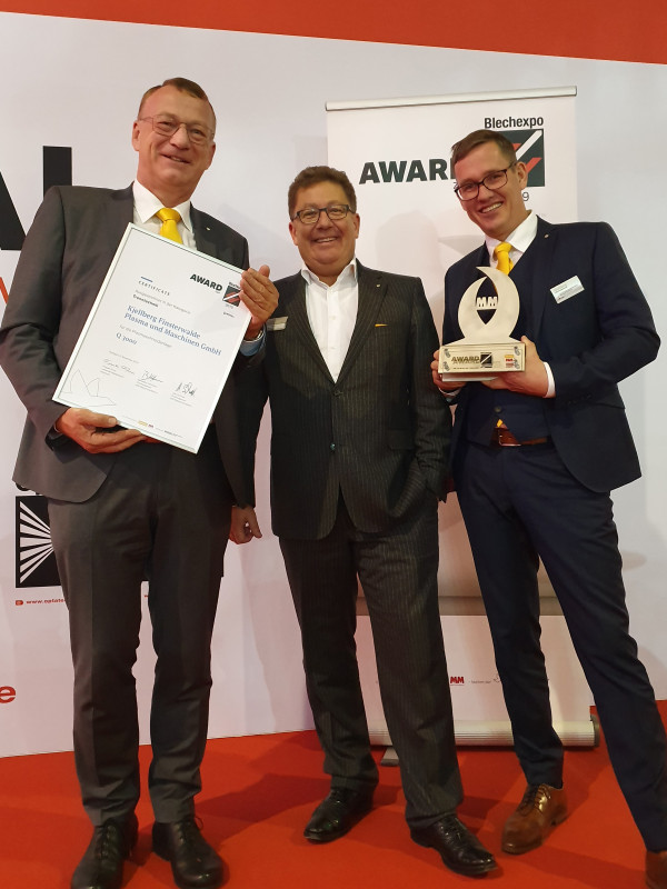 „Es ist immer bewegend, wenn ein Produkt, dessen Entstehung man über Jahre begleitet hat, in dieser Form gewürdigt wird. Dieser Preis ist auch deshalb etwas Besonderes, da unser Entwicklerteam mit der Digitalisierungsthematik vor völlig neuen Herausforderungen stand, die es zu meistern galt“ zeigt sich Kjellberg-Entwicklungsleiter Volker Krink sichtlich stolz mit dem „Award zur Blechexpo“ in der Hand. Mehrere Millionen Euro und jahrelange Forschungsarbeit hat Kjellberg Finsterwalde in die neueste Generation der Plasmastromquelle investiert. Dass sich genau das gelohnt hat, symbolisiert die Sieger-Trophäe für die „Q“ in der Kategorie Trenntechnik.
