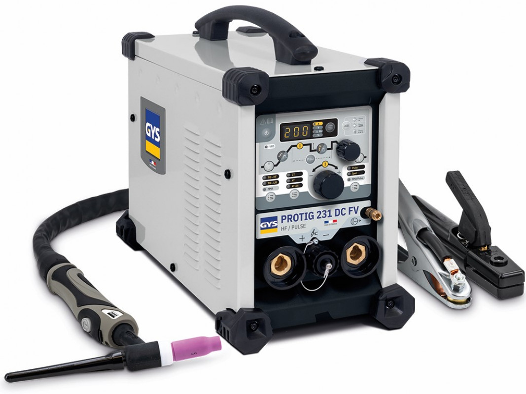 Mit der Protig 231 DC FV stellt GYS einen WIG-Schweißinverter vor, der speziell für das Schweißen mit gepulstem Gleichstrom entwickelt wurde. Das Gerät überzeugt durch seine kompakte Bauweise, seine hohe Leistungsfähigkeit sowie seine Eignung für anspruchsvolle Einsätze vor Ort. Dank integrierter PFC-Technologie arbeitet der Inverter in einem weiten Spannungsbereich von 85 V bis 265 V und gewährleistet eine konstant stabile Lichtbogenqualität – selbst beim Einsatz mit Verlängerungskabeln bis zu 100 Metern Länge.