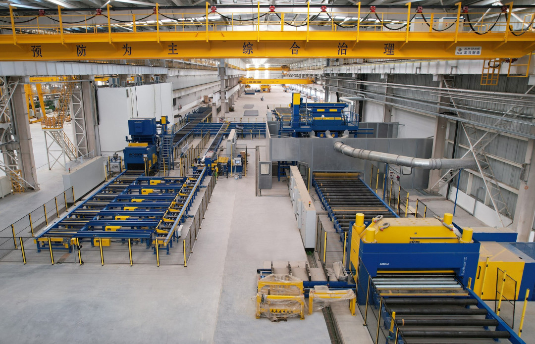 So ist die gesamte Linie, in der die Bleche vorgewärmt, gestrahlt, lackiert und getrocknet werden, auf eine Belastung von 7 Tonnen pro laufendem Meter ausgelegt. Üblich sind zwei bis drei Tonnen pro laufendem Meter. Die integrierte, 4.500 Millimeter breite Rollenbahnstrahlanlage verfügt über 10 Gamma 400G-Turbinen mit einer Antriebsleistung von jeweils 30 kW. Sie gewährleisten, dass auf der gesamten Breite der Bleche bei einer Vorschubgeschwindigkeit von 4 m/min zuverlässig ein homogenes Strahlergebnis erzielt wird und sorgen für eine hohe Produktivität.