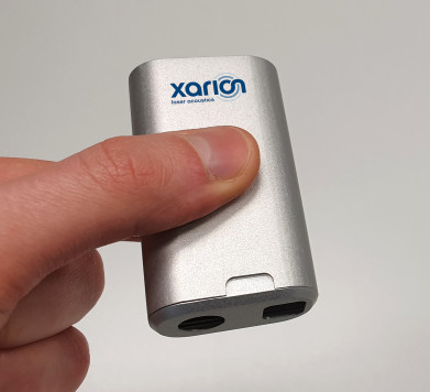 Das optische Mikrofon von XARION beseitigt den Widerspruch zwischen breitbandig und koppelmittelfrei durch folgende Idee: Es besitzt keinen Schwinger. In einem einzigartigen, rein optischen Verfahren verändert der Schall die Wellenlänge eines Laserstrahls, der zwischen zwei kleinen Spiegeln hin und her reflektiert wird. Damit ändert sich auch die Helligkeit des ausgekoppelten Lichtes, was ohne den Umweg über eine mechanische Schwingung gemessen wird. So erreicht das optische Mikrofon eine Frequenzbandbreite, die mindestens zwanzig Mal größer ist als die jedes anderen Ultraschallsensors.