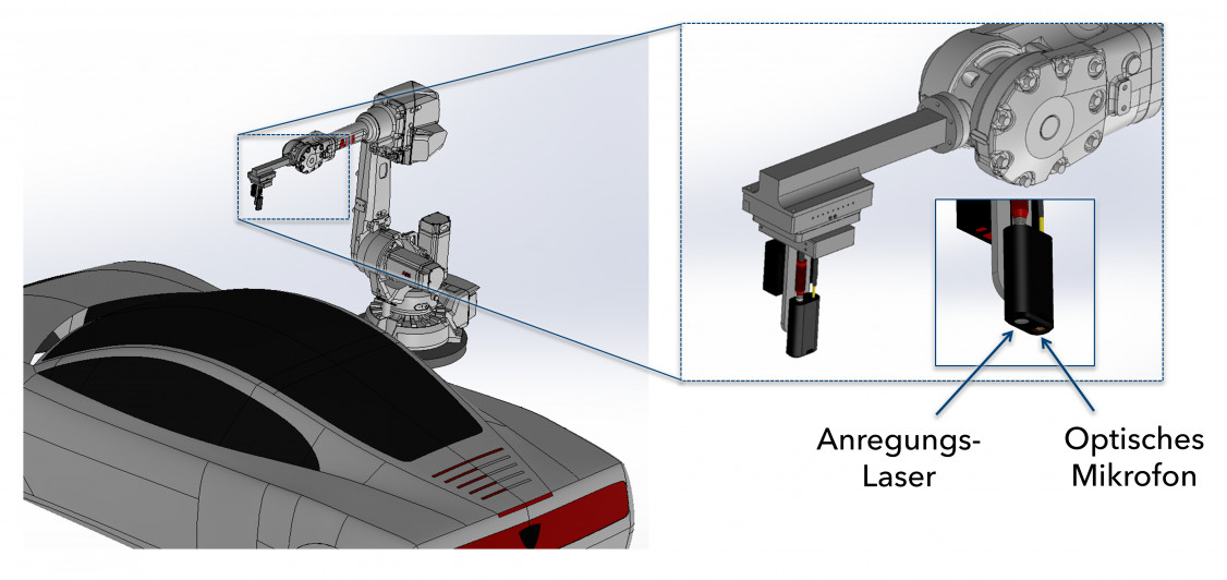 In enger Kooperation mit der Porsche Leipzig GmbH hat die Firma XARION Laser Acoustics aus Wien ein innovatives Prüfverfahren auf Basis des optischen Mikrofons entwickelt. Dieses ermöglicht eine berührungsfreie Ultraschallprüfung von Punktschweißverbindungen mittels Laser. Das optische Mikrofon wurde dazu gemeinsam mit einem ultraschallerzeugenden Laser in einen kompakten Prüfkopf integriert.