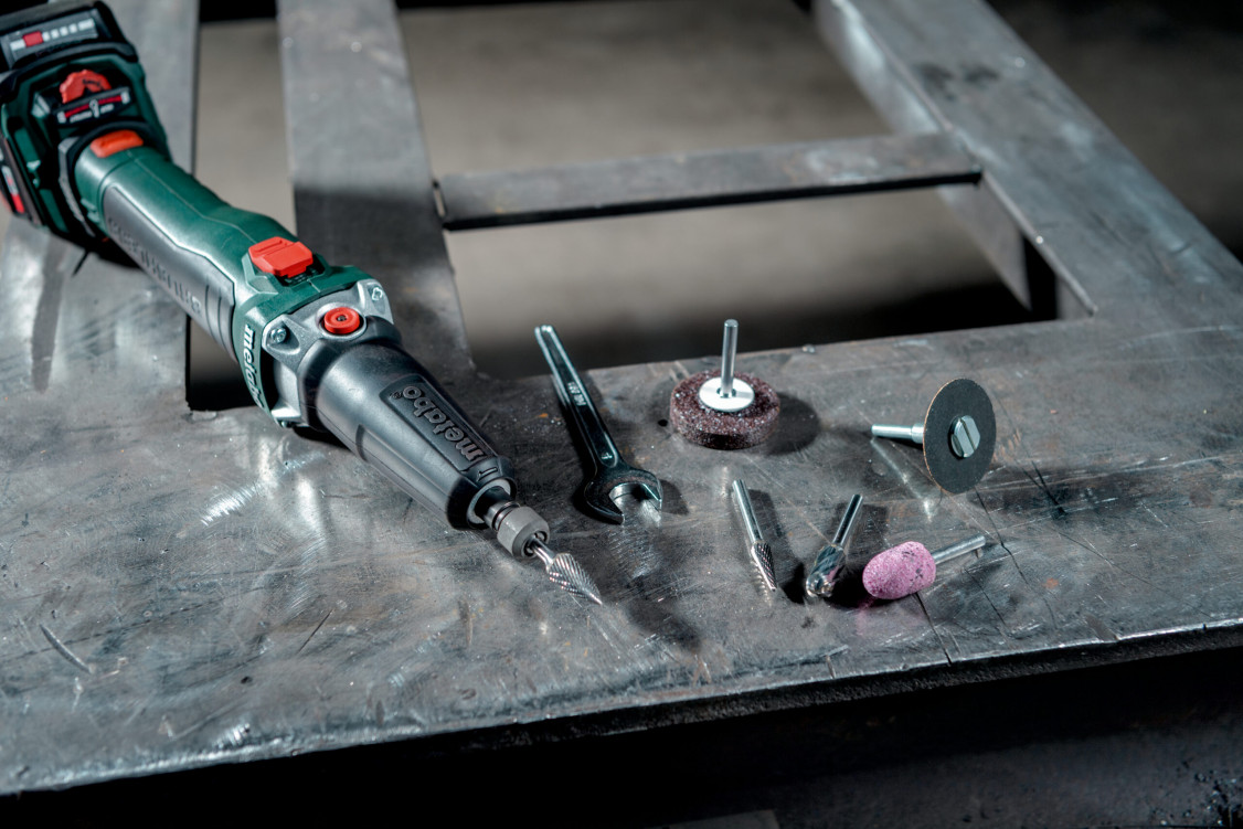 Alle Modelle werden mit einer 6 Millimeter Spannzange und einem leicht zu reinigenden Staubschutzfilter als Motorschutz vor groben Partikeln geliefert. Darüber hinaus hat Metabo auch ein umfangreiches Sortiment an verschiedenen Spannzangen, Fräsern, Schleifstiften und Lammellenschleifrädern.