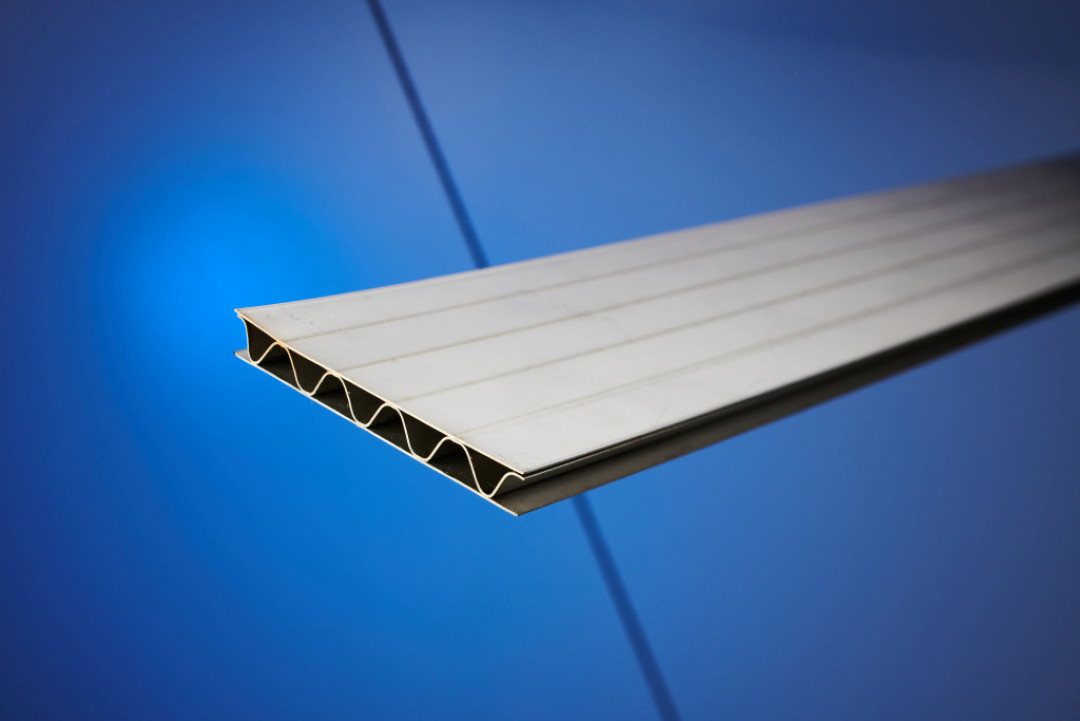 Solche besonders leichten Platten lassen sich im rollenden Verfahren in einem Durchlauf herstellen. Im Vergleich zu klassischen Methoden wie etwa dem Strangpressen bei hohen Temperaturen spart das Laserschweißen viel Energie, da das energiereiche Licht die Metalloberflächen nur hauchdünn lokal aufschmelzen muss. Auch eignet es sich für die preisgünstige Massenproduktion. Schon der Laborprototyp kommt auf ein hohes Fertigungstempo. Zum industriellen Maßstab weiterentwickelt, könnten derartige Anlagen mehr als zehn laufende Meter Leichtbaublech pro Minute schaffen, schätzt Andrea Berger. Zudem lassen sich solche Maschinen schnell auf neue Profil- oder Plattenstrukturen umrüsten. Strangpressen hingegen benötigen bei jeder Anwendung ein anderes Werkzeug, wenn der Kunde ein neues Plattenmodell bestellt.