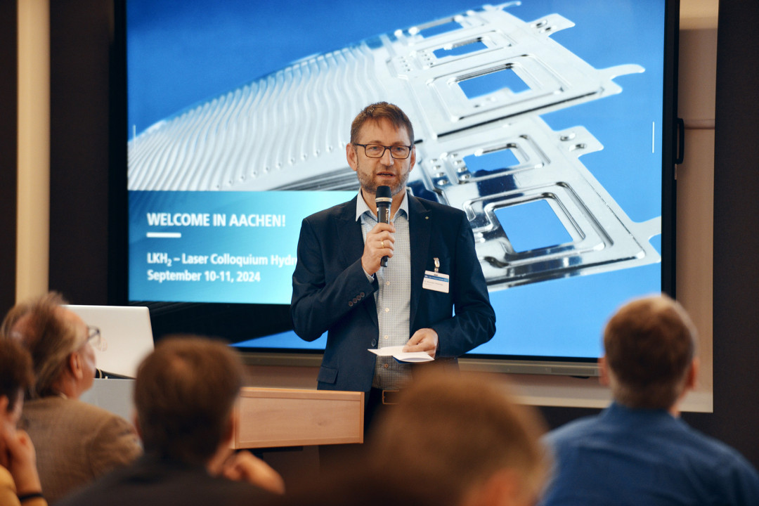„Die Lasertechnologie bietet uns die Möglichkeit, die Herausforderungen der Wasserstoffwirtschaft auf eine nachhaltige und effiziente Weise zu meistern“, erklärte Dr. Alexander Olowinsky, Leiter der Abteilung Fügen und Trennen am Fraunhofer ILT und Gastgeber der Veranstaltung. „Die Lasertechnologie ist der Schlüssel, um innovative Lösungen für die industrielle Fertigung von Brennstoffzellen und Elektrolyseuren zu entwickeln.“