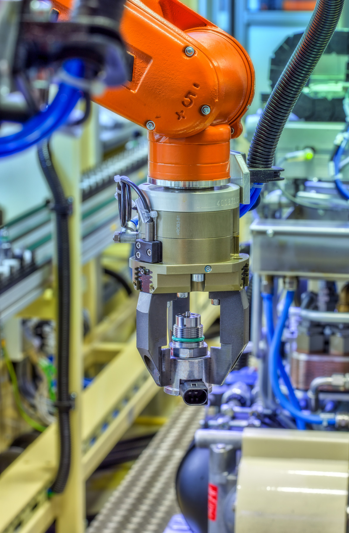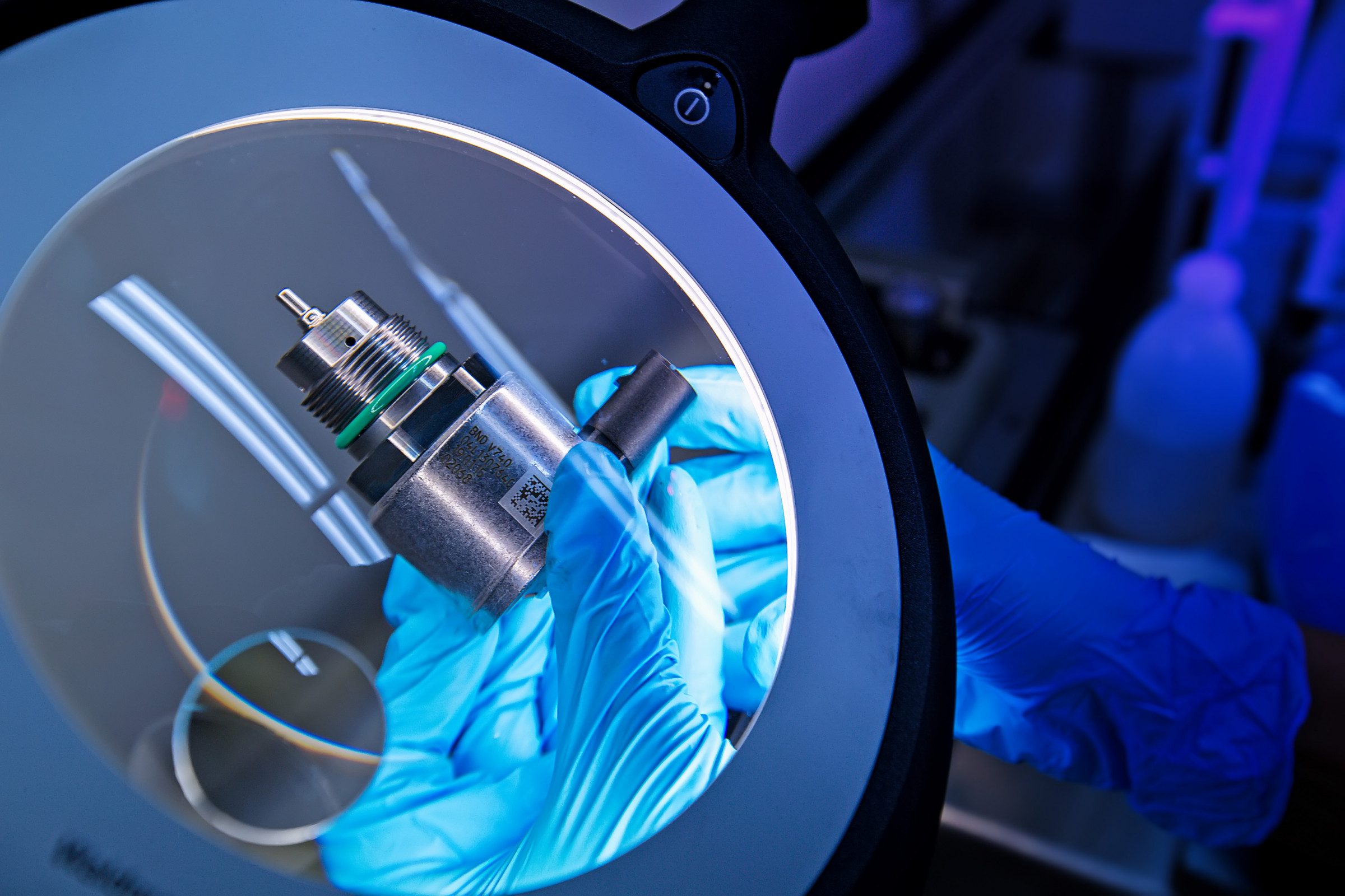 Die Laserschweißanlagen im Reinraum arbeiten mit Stickstoff als Schutzgasatmosphäre, um die Qualität der Schweißung sicherzustellen. „Das Ventil fährt automatisch in die Schweißkammer ein und dreht sich unter einem Laser, der das Bauteil verschweißt“, erklärt Alexander Merz. „Die Kammer fluten wir mit Stickstoff, um das Ventil vor Versprödungen und Blasen zu schützen.“ Blasen führen zu Leckagen an den Schweißnähten. Die Druckregelventile müssen immerhin Drücke bis 2.700 bar regulieren: „Der Kraftstoff darf unter keinen Umständen austreten und auf den heißen Motor gelangen!“ Deshalb würden die Ventile anschließend auch noch einer Leckagemessung unterzogen, um die Dichtigkeit zu 100 Prozent nachweisen zu können. Dafür wiederum setzt Kendrion ein Gemisch aus 10 Prozent Helium und 90 Prozent Stickstoff ein.