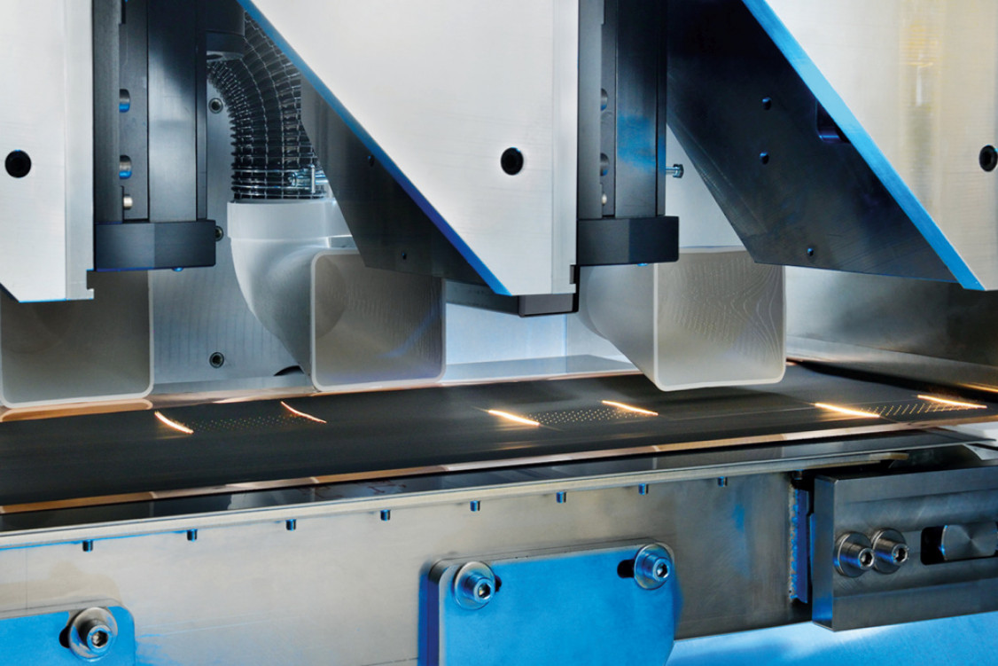 Eine Herausforderung bestand darin, mit diesem Verfahren auch größere Flächen zu bearbeiten, um den für die industrielle Fertigung notwendigen hohen Durchsatz zu erreichen. Das Fraunhofer Team löste das Problem, indem es eine Multistrahl- Anordnung zur parallelen Prozessführung verwendet. Vier Scanner mit jeweils sechs Teilstrahlern fahren parallel über das Band. Sie decken eine Breite von 250 Millimetern ab und bearbeiten dabei kontinuierlich die Elektrodenschicht. Entwickelt und umgesetzt wurde die Multistrahl-Optik in enger Zusammenarbeit mit der Pulsar Photonics GmbH, einem 2013 gegründeten Spin-off des Fraunhofer ILT.