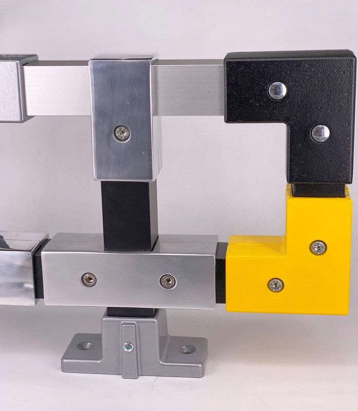 Bis vor wenigen Tagen noch drehte sich im Produktprogramm von Brinck alles um Aluminium-Verbinder für Rundrohr-Konstruktionen. Über 450 starre und bewegliche sowie ein- und mehrteilige Verbindertypen für die Gestaltung von Absturzsicherungen, Geländern, Bühnen, Regalen, Haltesystemen und Steighilfen umfasst das aktuelle Katalogsortiment des Unternehmens in diesem Bereich. Ab sofort aber offeriert Brinck seinen Kunden auch eine erste Baureihe mit eckigen Verbindern für die Realisierung von Vierkantrohr-Konstruktionen. Sie bestehen ebenfalls aus Aluminium und eignen sich zur passgenauen Verbindung und Befestigung von Rohren mit quadratischem Querschnitt und Kantenlänge von 35 Millimetern.