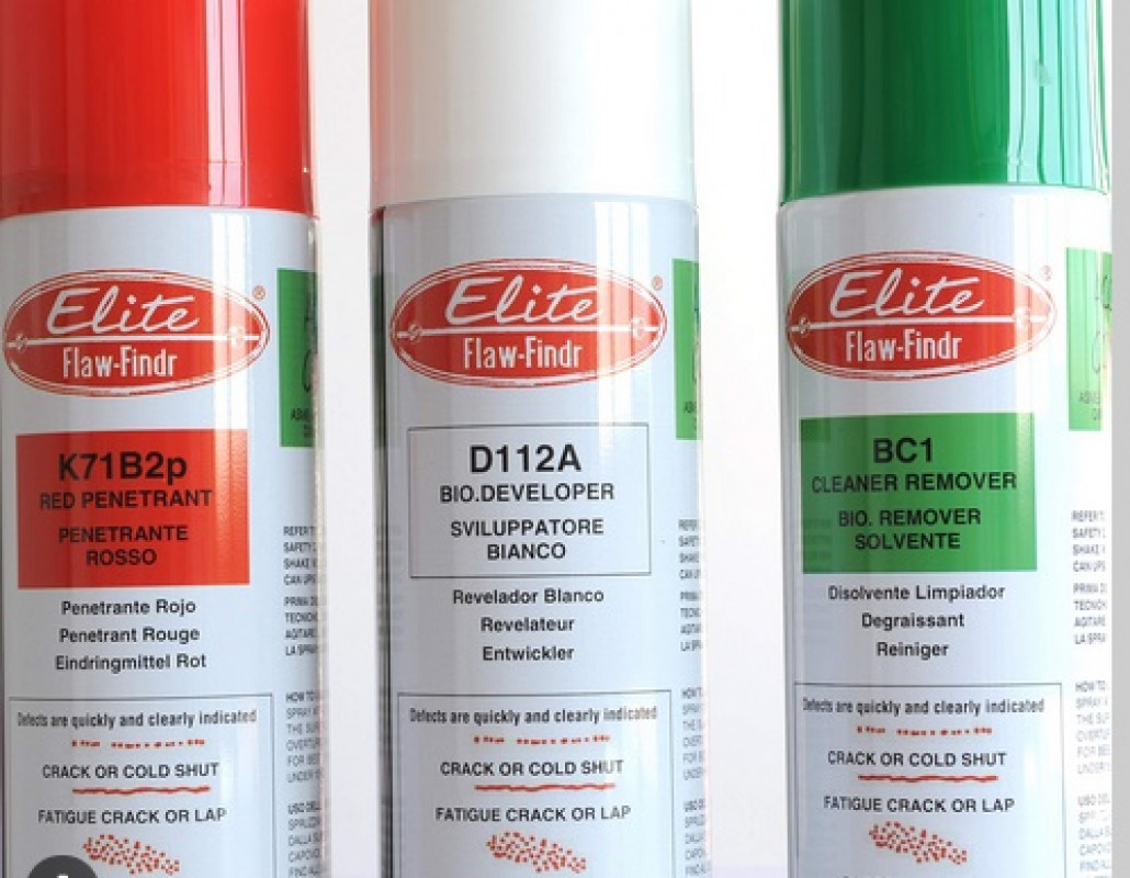 NDT Italiana presents new liquid penetrants for high temperature, up to 200 °C on hot weldings. Elite K71HT is the red penetrant; Elite RHT1 is the remover; Elite D200 is the white developer. All these products are used together in liquid penetrant testing at high temperatures, up to 200 °C (400 °F).