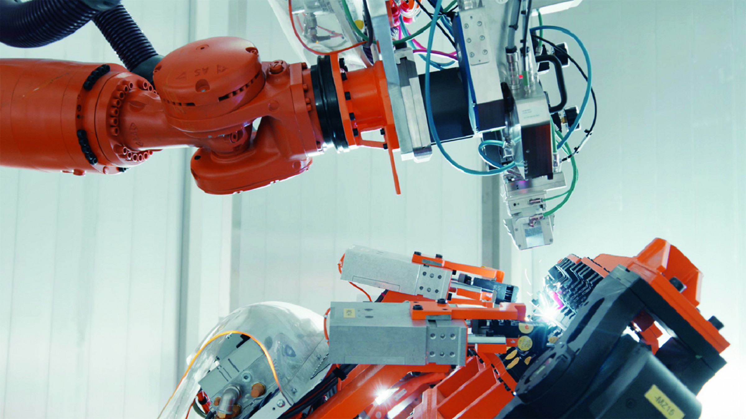 Als Praxisbeispiel für flexible Fertigung entstand bei der Paderborner Benteler AG ein Showcase: Es handelt sich um einen Batterieträger, der als Demonstrator-Bauteil auf einer mehrstufigen, verketteten Pilotanlage unter den typischen Bedingungen einer Automobilproduktion getestet wurde. Ein rund 100 kg schweres Bauteil (0,8 bis 8 mm Materialdicke) aus Aluminium und Stahl, soll in einer 8-Stundenschicht in Losgröße 220 bis 230 entstehen. Laser übernehmen das Schweißen und Schneiden, der Biegeprozess läuft mechanisch ab.