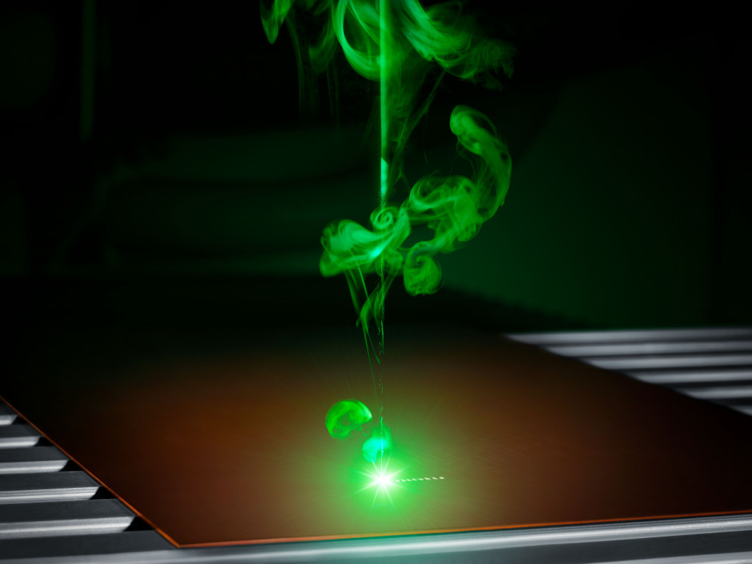 Auch das Thema Kupfer spielt für Trumpf eine wichtige Rolle: So kommt eine grüne Laserstrahlquelle zum direkten Verbinden von Kupfer mit Keramik (DCB: direct copper bonding) zum Einsatz. Innerhalb von 100 ms verbindet ein grüner Laser (TruDisk 1020) die doppelte Kupferschicht (2x 0,3 mm) mit einem Keramikträger. Ein Video zeigte, wie das DCB-Verfahren spritzerfrei und prozesssicher mit sehr geringer Einschweißtiefe (0,05 mm!) arbeitet.