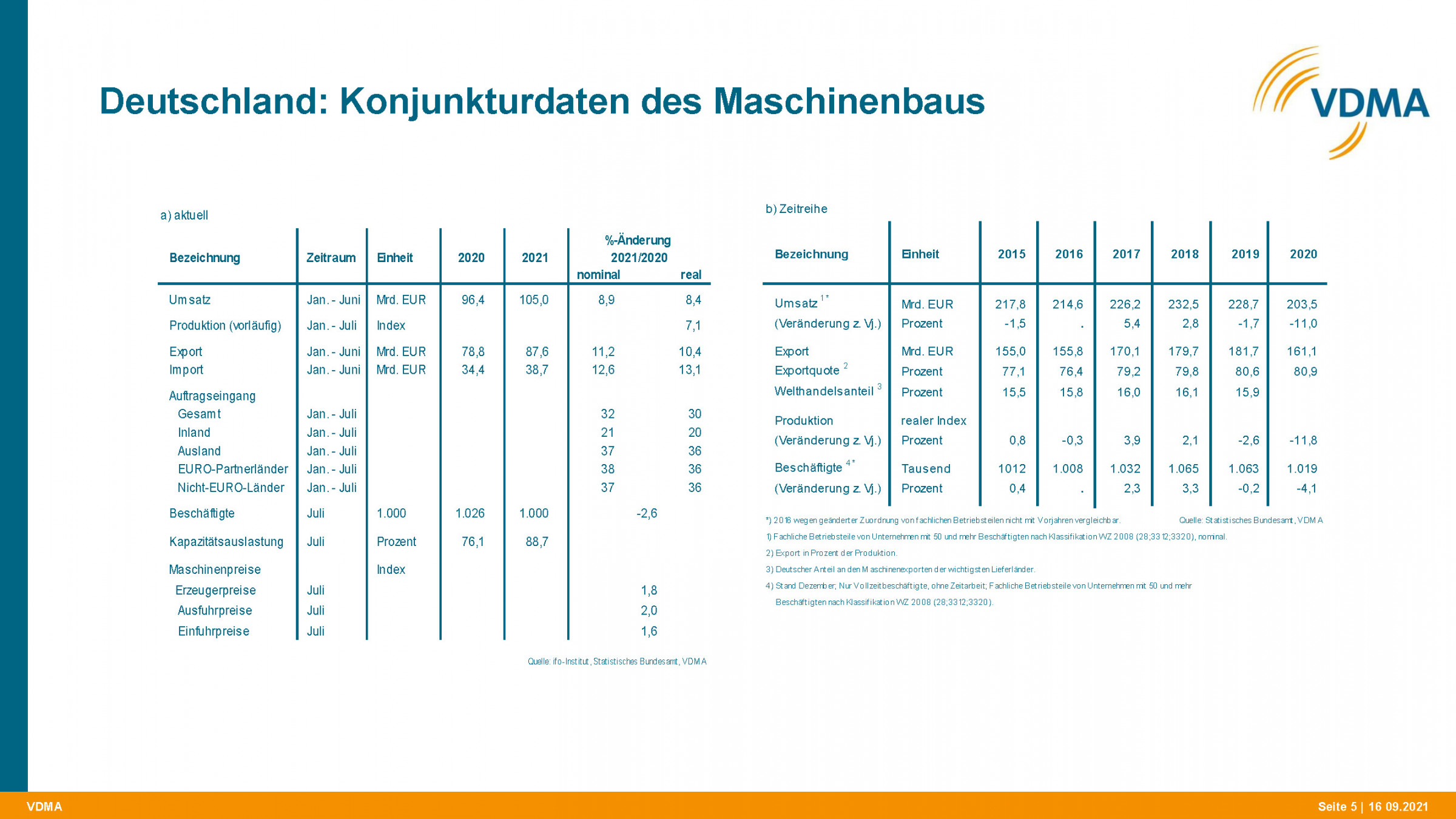 Die hohe Inanspruchnahme der Kurzarbeit in der Krise hat dem Maschinen- und Anlagenbau zweifelsfrei noch größere Probleme erspart. Doch mit Blick nach vorne bedarf es großer Anstrengungen in den Unternehmen, in der Gesellschaft und in der Politik, um die Wettbewerbsfähigkeit des industriellen Mittelstands auf Dauer zu erhalten, besser noch: zu steigern. „Die nächste Bundesregierung muss den Unternehmen endlich wieder mehr Freiheiten geben, um mit marktwirtschaftlichen Mitteln die tiefgreifende Transformation der Wirtschaft nicht nur zu meistern, sondern daraus auch neues Wachstum zu generieren. Denn das entsteht nicht durch steuerfinanzierten staatlichen Aktionismus, sondern durch unternehmerischen Mut, persönlichen und finanziellen Einsatz und die Fähigkeit, auch einmal Rückschläge hinnehmen zu können. Vor diesem Hintergrund sind alle Pläne zur Wiedereinführung einer Vermögensteuer Gift für die Anstrengungen abertausender Mittelständler, die große Investitionen aus eigener Kraft stemmen müssen.“
