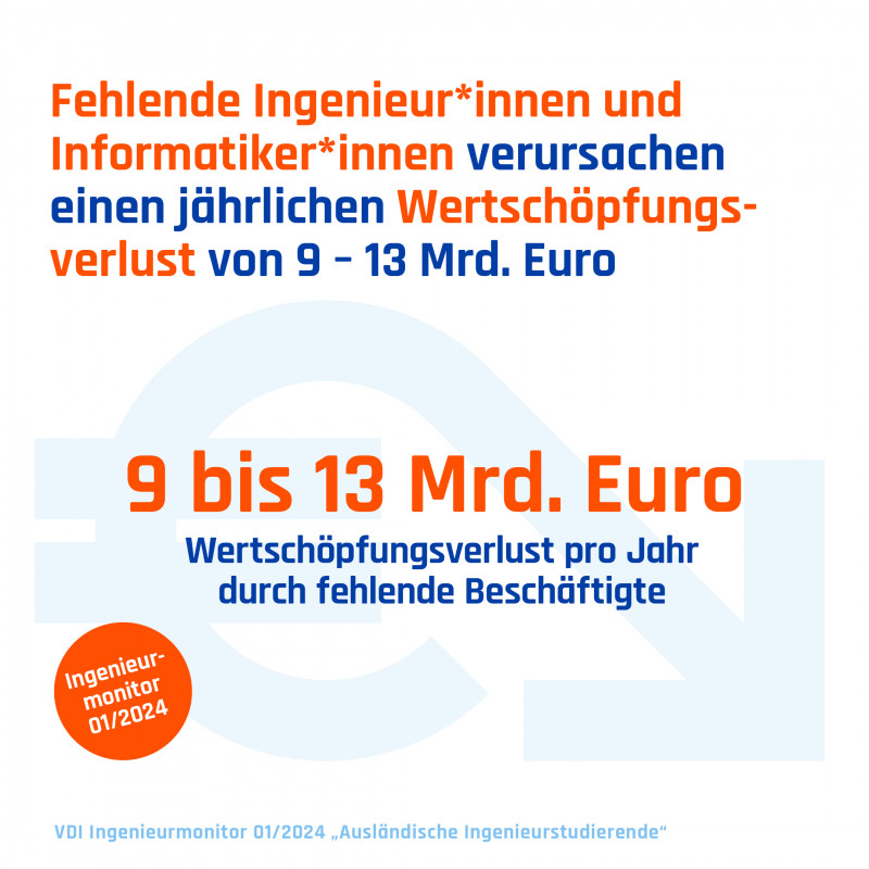 „Die Wertschöpfungsverluste wären ohne Zuwanderung deutlich höher“, ergänzt Prof. Axel Plünnecke vom IW. „Ohne die hohe Dynamik bei der Beschäftigung von ausländischen Fachkräften in Ingenieur- und Informatikberufen wäre die Anzahl der fehlenden Beschäftigten in diesen Berufen und damit der Wertschöpfungsverlust durch den Mangel in Ingenieur- und Informatikberufen gut doppelt so hoch“, führt er weiter aus.