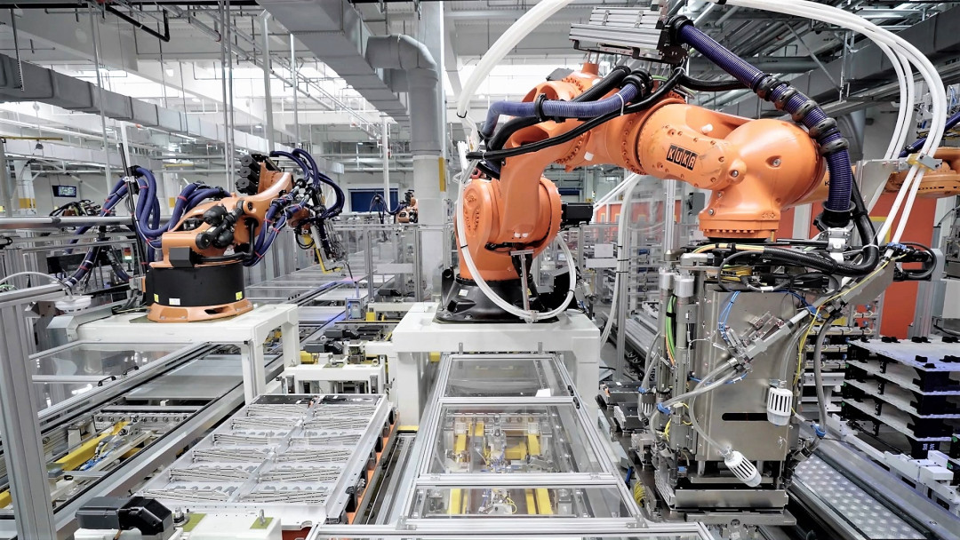In der Fabrik reihen sich Schweißlinien für Batterieschalen an Batterie-Verpackungslinien. Dazu kommen Prüfgeräte und Logistik. Auf der automatisierten Schweißlinie für Batteriegehäuse schweißen und kleben Roboter von KUKA. Auch bei der Verpackung der Batteriepacks sind Roboter von KUKA im Einsatz. Dort arbeiten Roboter der KR QUANTEC, KR FORTEC und KR titan Familien zusammen, um den Verpackungsprozess voll zu automatisieren.
