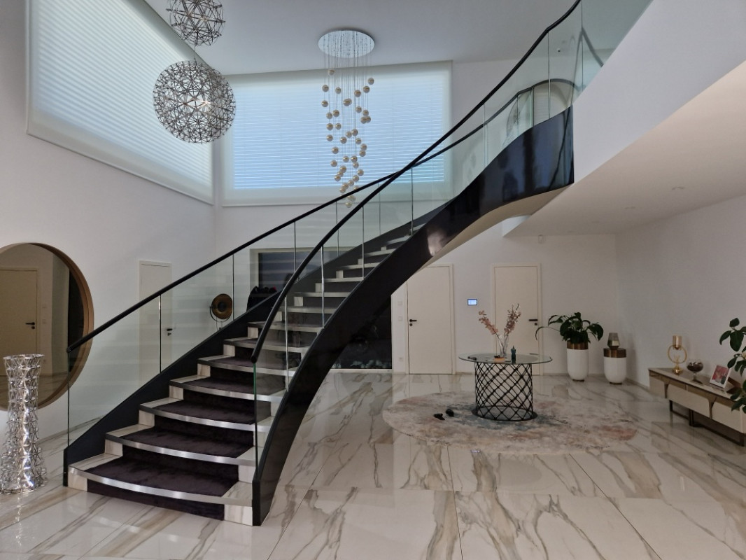 Über den Deutschen Metallbaupreis in der Kategorie Treppen und Geländer freut sich die Klevenz GmbH aus Waghäusel für die montagefertige Konstruktion einer repräsentativen, geschwungenen Treppe im Foyer eines Privatgebäudes. Der Grundriss der Treppe besteht aus Ellipsen, die sich nach oben verschlanken.