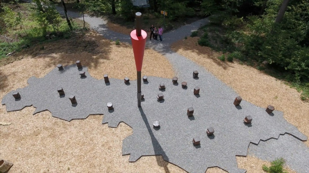 Die leicht geneigte Stecknadel beeindruckt durch ihre schiere Größe von knapp neun Metern. Die Säulen für die Kommunen wurden jeweils individuell aus Vierkant-Stahlblech gestaucht und auf einer Fläche platziert, die mit flachen Begrenzungsblechen den Umriss des Kreisgebietes nachzeichnet. Die Jury lobte insbesondere die überzeugende Gestaltung und künstlerischen Ausführung sowie die enormen organisatorischen Fähigkeiten des Betriebs.