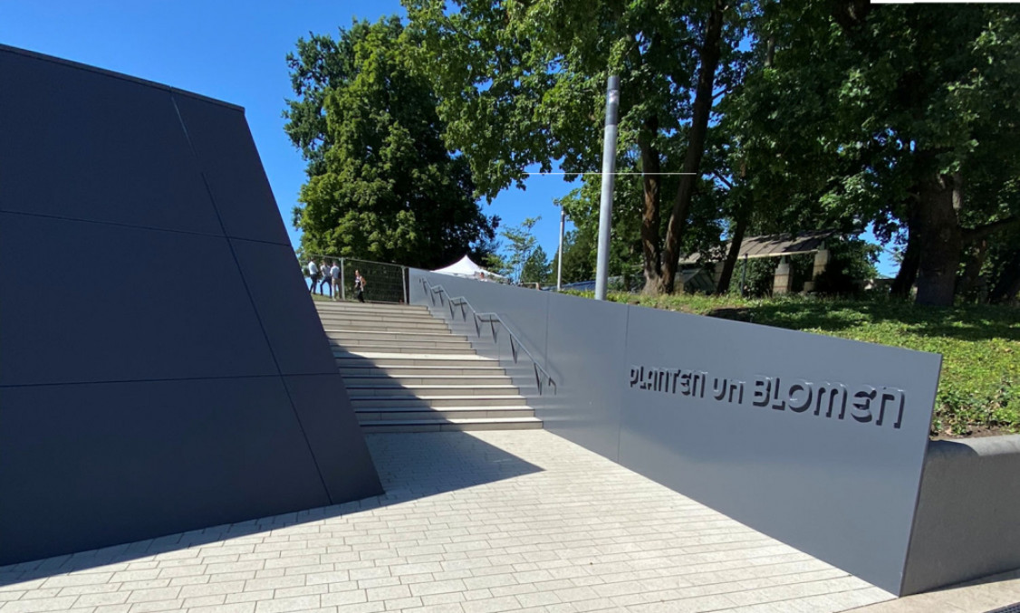 Gewinner in der Kategorie Sonderkonstruktionen ist die Firma Buthmann Ingenieur-Stahlbau aus Glinde für den Neubau des Eingangsbereiches für den Park Planten und Blomen in Hamburg. Ein Bezug zum Schiffbau ist in der Hansestadt naheliegend und so ist die Gestaltung geprägt durch große, schräge Metallflächen.
