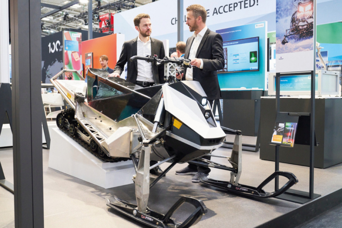 Ein Schneemobil gehört sicher zu den ungewöhnlichsten Exponaten auf einer Lasermesse. In diesem Jahr zeigte das Fraunhofer ILT ein elektrisches Schneemobil des finnischen Fahrzeugherstellers Aurora Powertrains auf seinem Stand. Es nutzt kältefeste Batterien mit äußerst hoher Energiedichte, die für arktische Temperaturen entwickelt wurden. Die Fügetechnik für die IP67-klassifizierten Batterien wurde in Aachen maßgeschneidert.