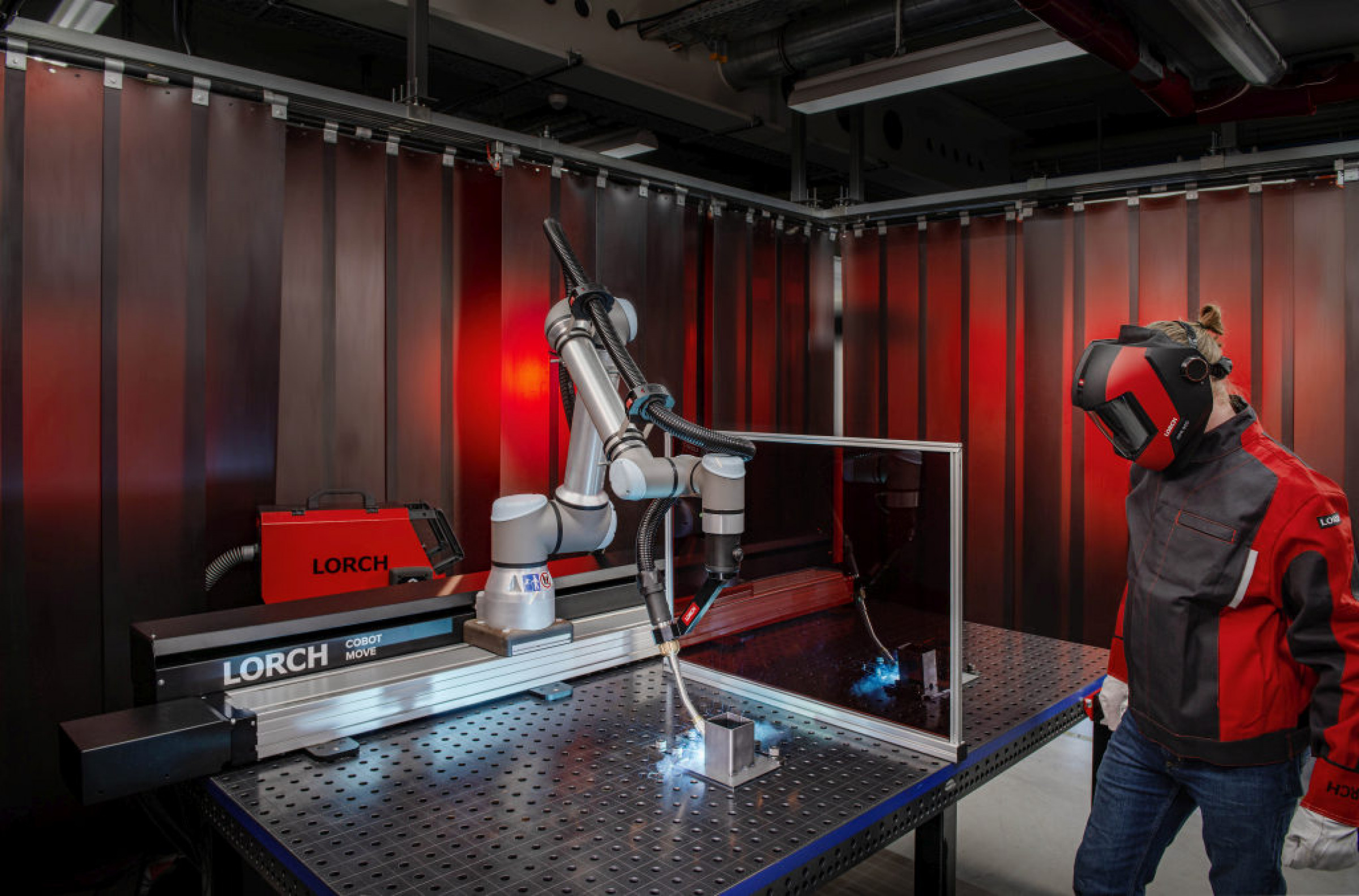 Lorch Schweißtechnik, Pionier und Marktführer beim Cobot-Schweißen, baut mit der neuen Cobot Move sein Angebot weiter aus. Unternehmen können nun noch einfacher größere Werkstücke oder mehrere auf einem Arbeitstisch aufgespannte kleinere Werkstücke automatisch schweißen und so ihre Fertigungseffizienz deutlich erhöhen. Herzstück der neuen Lösung ist eine Linearachse mit einem Verfahrbereich von 2.000 Millimetern, die mit einem hochpräzisen wiederholgenauen Kugelgewindeantrieb arbeitet und eine Verfahrgeschwindigkeit von 2 bis 160 mm pro Sekunde zulässt. Die Linearachse kann auf jedem gängigen Schweißarbeitstisch montiert werden, der über eine Mindestlänge von 2,4 Meter verfügt. Auch bereits installierte Cobot Welding Solutions mit einem UR 10e Cobot können problemlos mit der Linearachse nachgerüstet werden. Der Arbeitsbereich des Cobots erweitert sich so auf über 4,5 Meter.