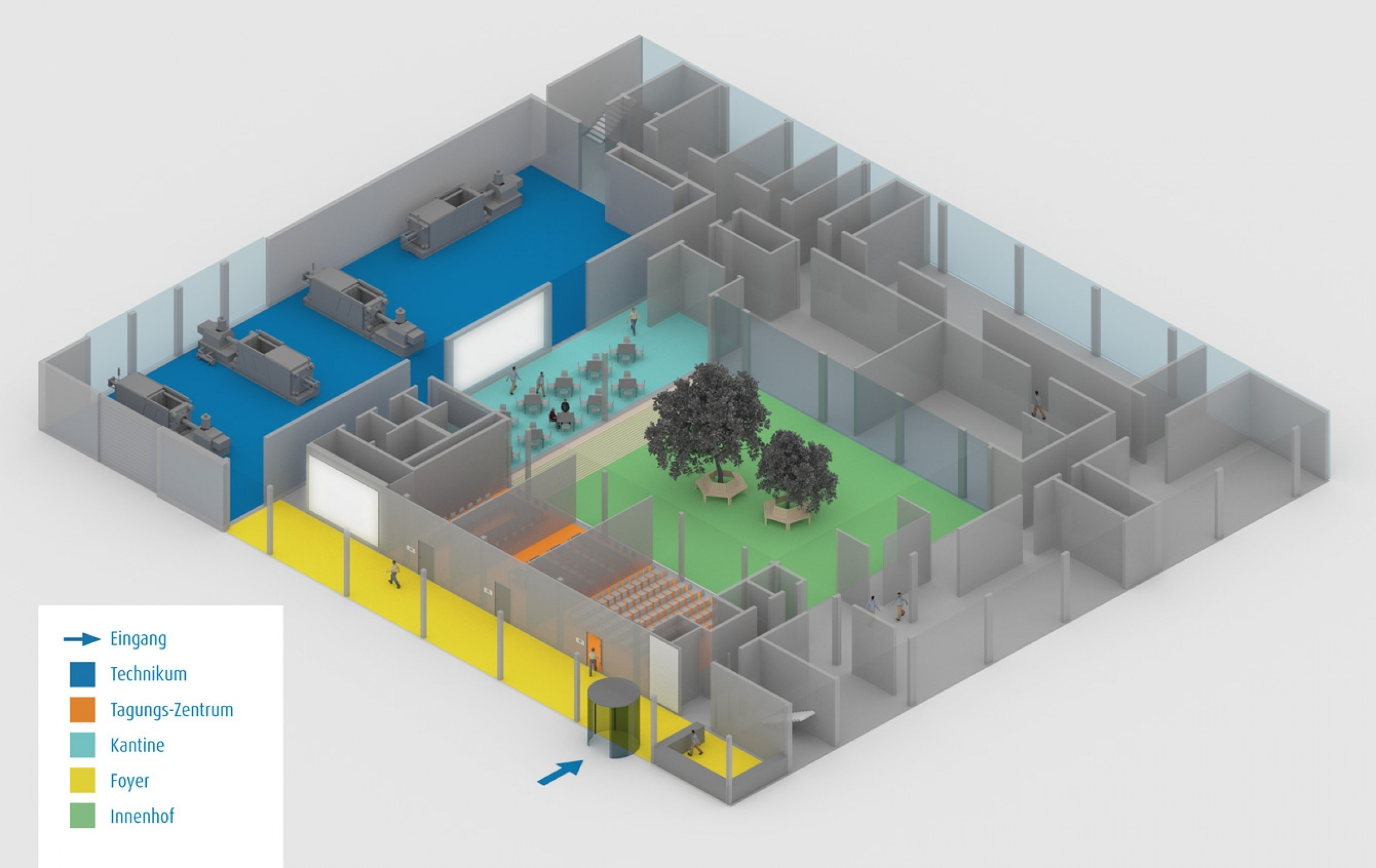 „Flexible OpenSpace-Bürowelten werden eine abteilungsübergreifende und interdisziplinäre Zusammenarbeit verbessern. Kurze Wege durch das gesamte Gebäude erhöhen den gegenseitigen Austausch und die Effizienz des SKZ als Dienstleister für den Mittelstand“ erläutert Projektleiter für die Modellfabrik Dr. Johann Erath. Im Erdgeschoss wird außerdem eine Kinderkrippe für zwölf Kinder sowie ein Eltern-Kind-Zimmer entstehen, um der flexiblen Arbeitswelt von morgen und den steigenden Anforderungen an eine bessere Vereinbarkeit von Familie und Beruf gerecht zu werden.