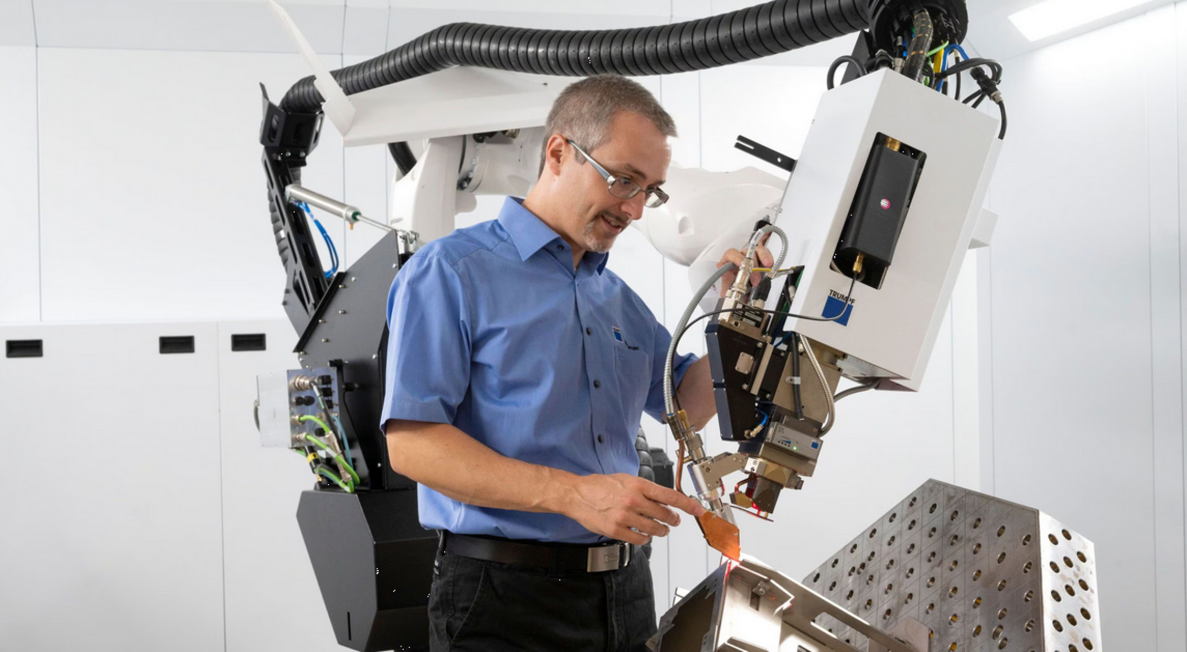 The TruLaser Weld 5000 is also particularly energy-efficient, as the integrated next-generation TruFiber laser consumes around 20 % less energy. At the same time, welding depths can be increased by 5 %. The new design of the protective cabin with higher doors also ensures that larger components can be transported into the machine more easily.