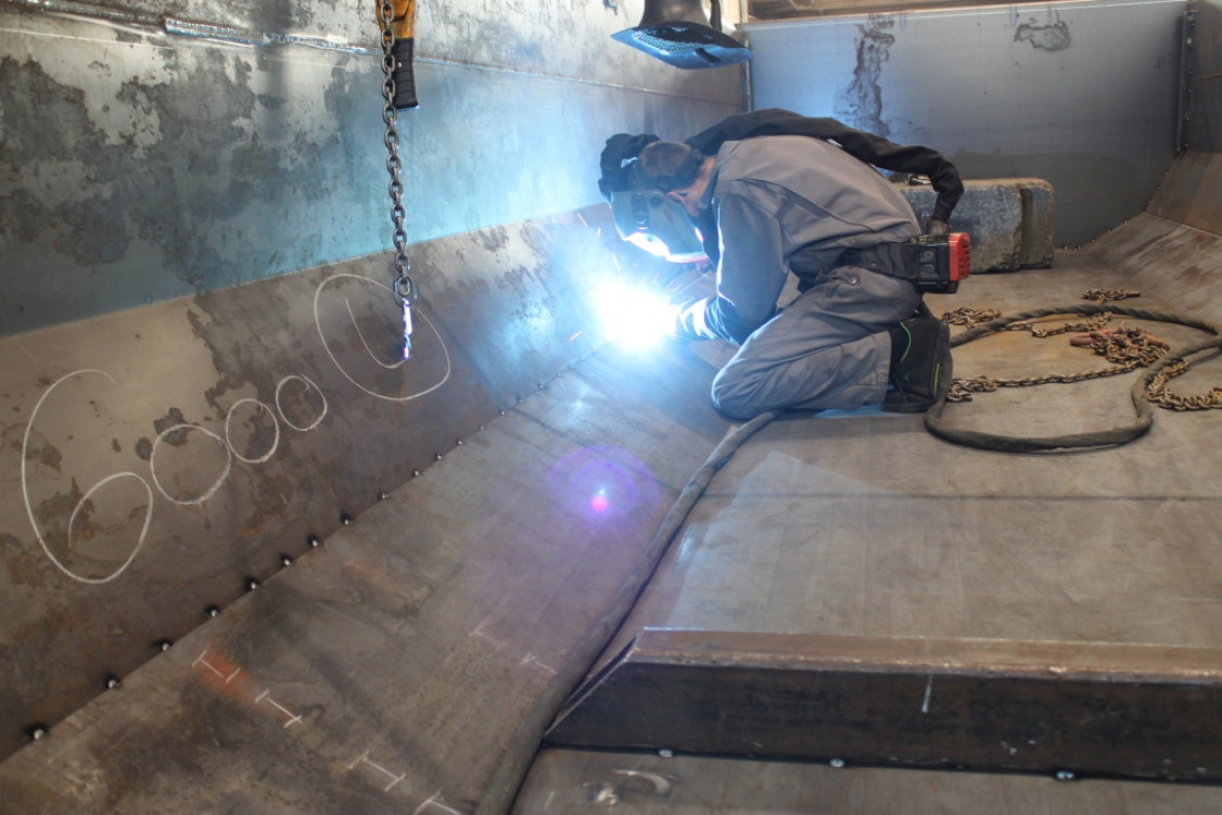 „Schweißnähte kommen bei uns in praktisch allen Bauteilen vor. Im tagtäglichen Baustelleneinsatz müssen diese Erschütterungen, Vibrationen und Verwindungen standhalten – etwa, wenn tonnenschwere Felsblöcke aus der Schaufel eines Radladers auf die Kippermulde treffen. Da fehlerhafte Nähte gravierende Folgen haben, ist unser Anspruch an die Professionalität unserer Schweißer und die von ihnen verwendeten Geräte außerordentlich hoch“, betont Stephan Zingg, Konstrukteur bei der Moser AG. Besonderes Augenmerk wird auf einwandfreie Schweißnähte in den tragenden Bauteilen wie der Muldenunterkonstruktion oder dem Hilfsrahmen gelegt.