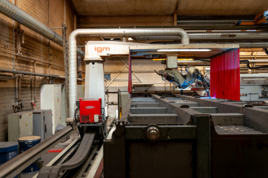 Die überwiegende Mehrheit der Schweißnähte wird bei der Moser AG im MAG-Verfahren handgeschweißt. Neben beachtlichen Schweißgeschwindigkeiten bietet MAG-Schweißen hohe Abschmelzleistungen, gleichzeitig wird relativ wenig Streckenenergie in die zu verschweißenden Kipperteile eingebracht. Bei Serienteilen oder immer wiederkehrenden Prozessen – wie dem Schweißen der Hilfsrahmen der Kippermulden – kommt in Steffisburg eine Portalanlage mit einem Schweißroboter zum Einsatz. Die Portalanlage ermöglicht es, den gesamten Kipper in die entsprechende Schweißposition zu drehen. „Die Beschaffenheit der Schweißnaht gibt uns die WPS vor. Bei den Stärken der Kehlnähte halten wir uns dabei grundsätzlich an das A-Maß, also die Dicke des dünnsten Blechelements multipliziert mit 0,7“, schildert Stefan Rolli.
