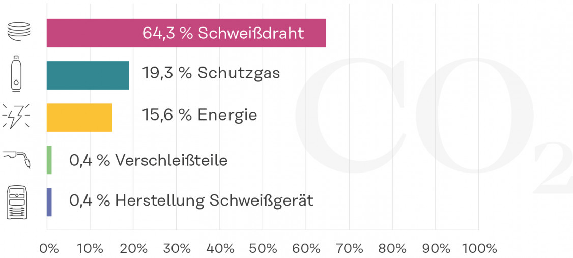 Im beschriebenen Lebenszyklus eines Fronius TPS/i-Schweißsystems entfallen insgesamt lediglich rund 0,5 % der gesamten CO2-Äquivalente auf die Herstellung des Schweißgerätes, die Reparatur und Entsorgung desselben. Der Rest verteilt sich auf den verwendeten Zusatzwerkstoff, das Schutzgas und den Energieeinsatz. Damit steht fest, dass speziell diese Ressourcen effizient eingesetzt werden müssen.