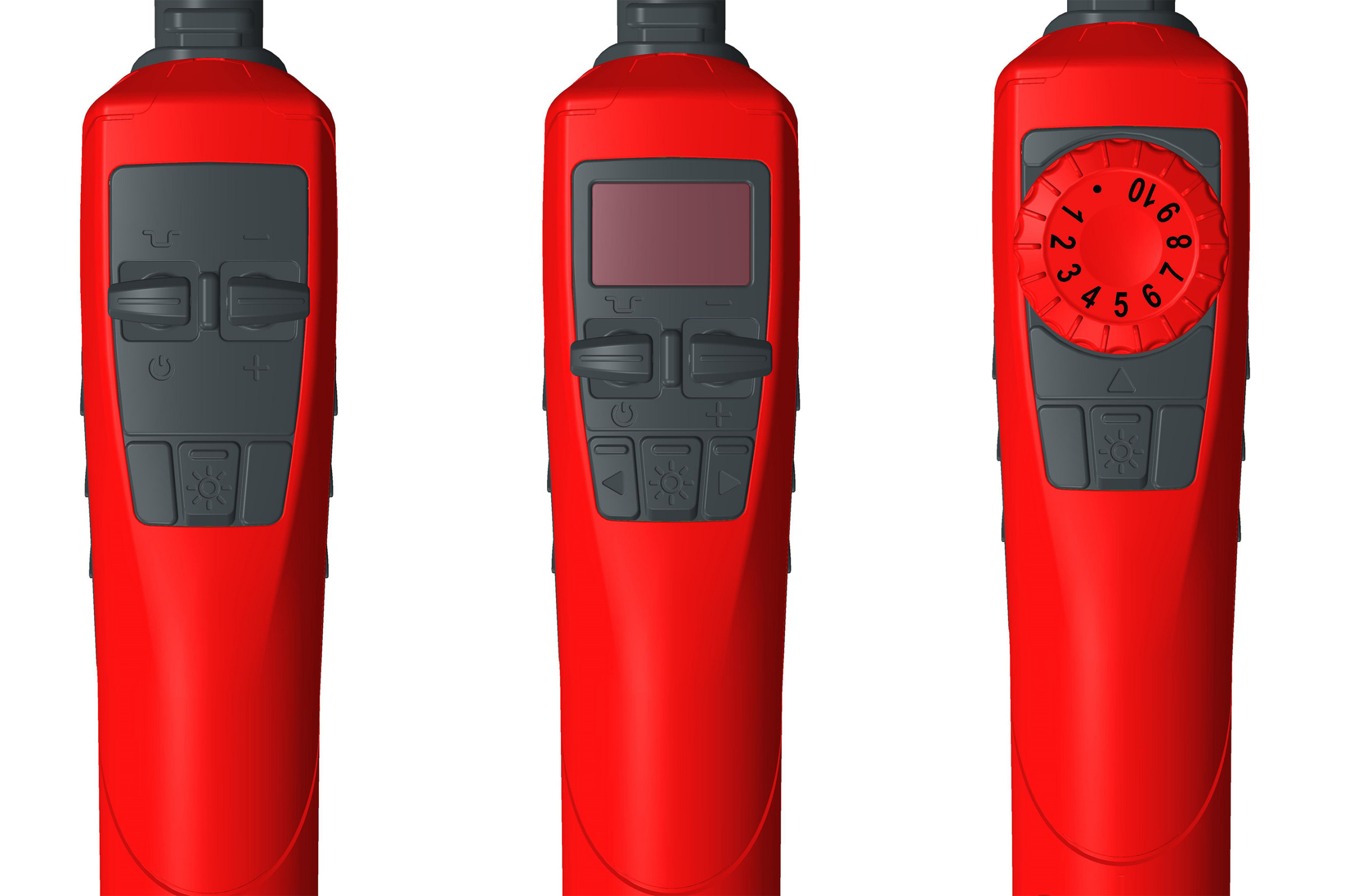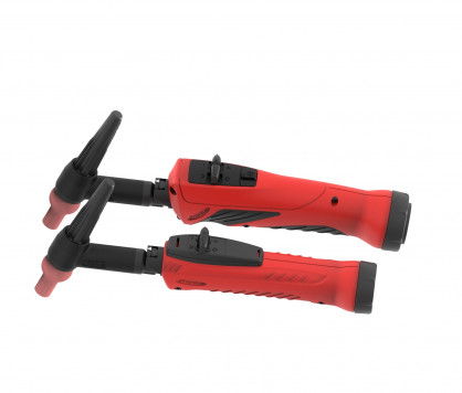 Die Griffschalen der neuen WIG-Schweißbrenner sind mit drei unterschiedlichen Steuerungselementen verfügbar: Up-Down Wippe, Jobmaster Anzeige oder drehbarem Potentiometer. Dieses User-Interface kann gewechselt werden. Bei der Entwicklung der Brenner wurde zudem auf eine komfortable Handhabung Wert gelegt: Für möglichst ermüdungsfreies Arbeiten ist der Griff rutschfest und beinhaltet weiche Komponenten. Ein Kugelgelenk zwischen Schlauch und Brenner sorgt für eine flexible Handhabung. Darüber hinaus kann der Brennerkörper endlos gedreht werden. Eine weitere Erleichterung für den Schweißer bringt ein LED-Licht am Brenner, das die Schweißstelle vor und nach dem Schweißen beleuchtet. Außerdem kann der Anwender, je nach Präferenz, zwischen einer Standard- und einer kleineren, auf die Größe optimierten, Griffschale wählen. Auch diese kompakte Ausführung ist mit verschiedenen Steuerungsoptionen erhältlich.