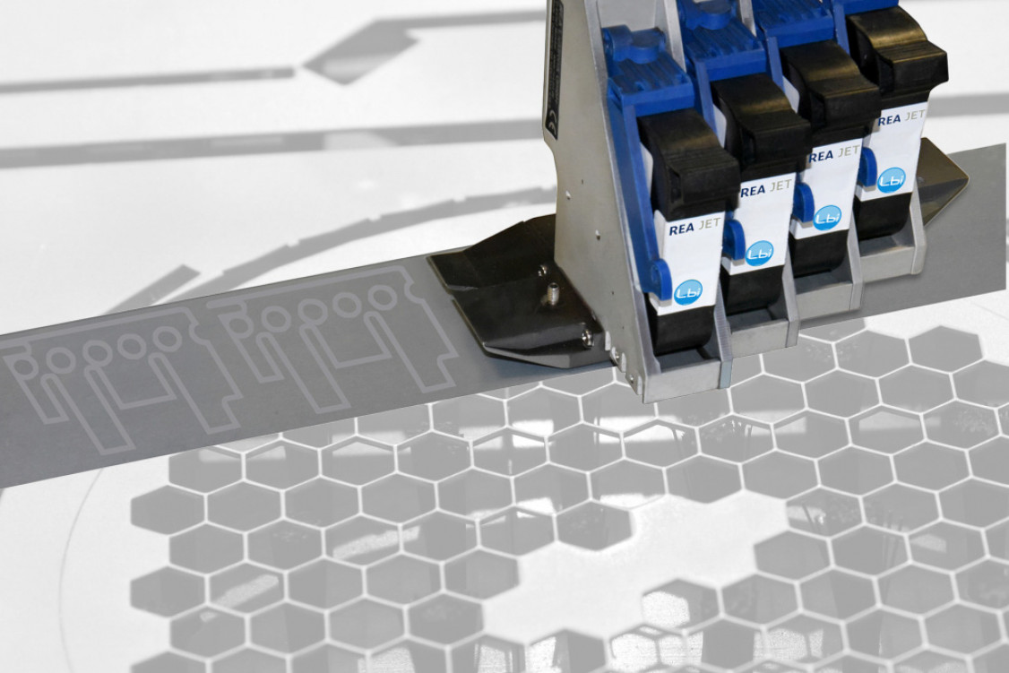 Auch für das REA JET DOD Lube System haben beide Unternehmen zusammen eine Lösung entwickelt, die auf den ölfreien Hightech-Schmierstoffen von LBI oil free basiert, wodurch die Coil- und Platinenbenetzung mit Auftragsbreiten von bis zu 2.300 Millimeter möglich ist. Dieses industrietaugliche System kann flexibel mit Robotern oder Traversenkonstruktionen eingesetzt werden, um aus allen Positionen Schmierstoff von oben, unten oder der Seite zu verdrucken.