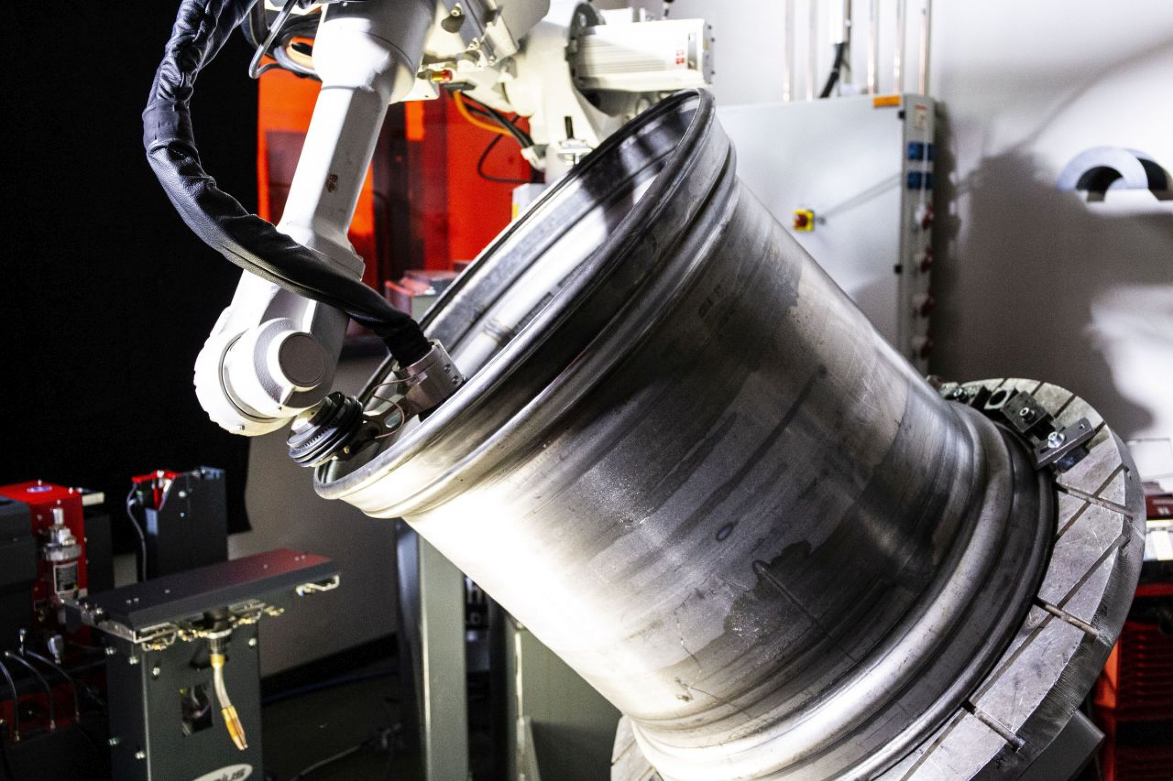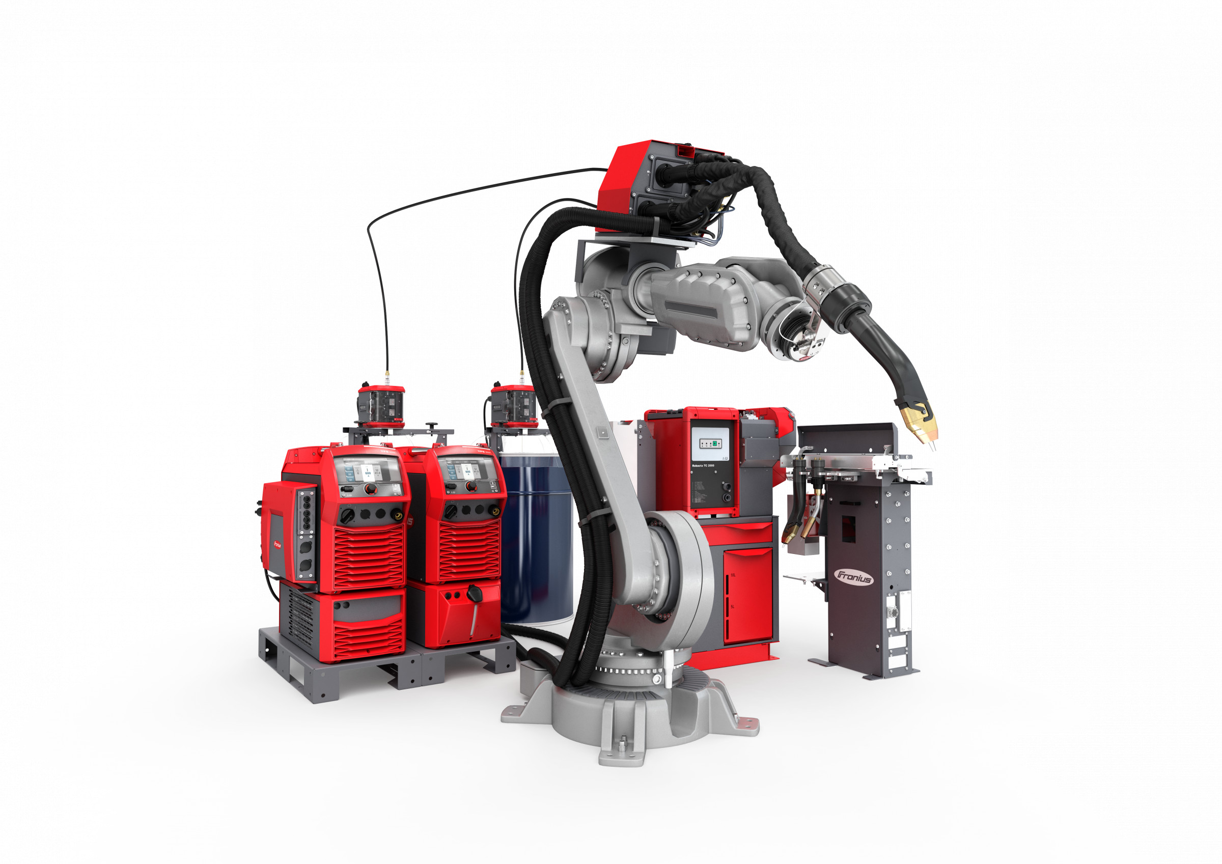 Die Effizienz des Schweißsystems kann durch den Einsatz der TX TWIN-Schweißbrenner-Wechselstation weiter gesteigert werden: Die Konsole ermöglicht den automatisierten Wechsel zwischen TWIN und Single Brennerkörpern. So kann dasselbe System besonders schwer zugängliche Stellen mit dem kompakteren Single-Brennerkörper schweißen. Der Roboter wechselt selbstständig den Brennerkörper – das macht Geisterschichten möglich.