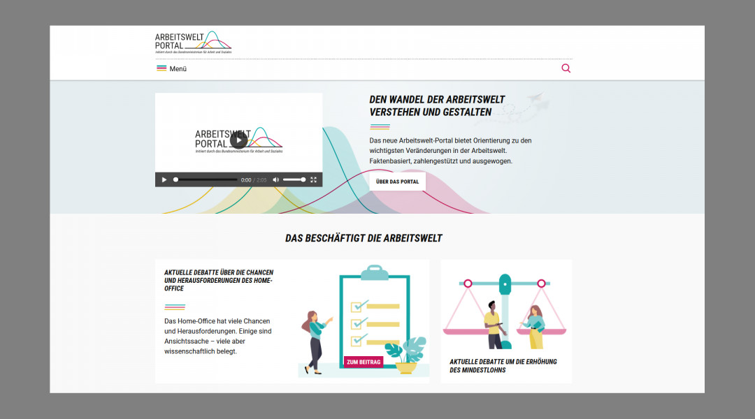 Die unabhängige Berichterstattung über die Arbeitswelt in Deutschland im Auftrag des Bundesministeriums für Arbeit und Soziales ist am 11. Mai 2021 mit der Veröffentlichung des Arbeitswelt-Portals unter arbeitswelt-portal.de gestartet.