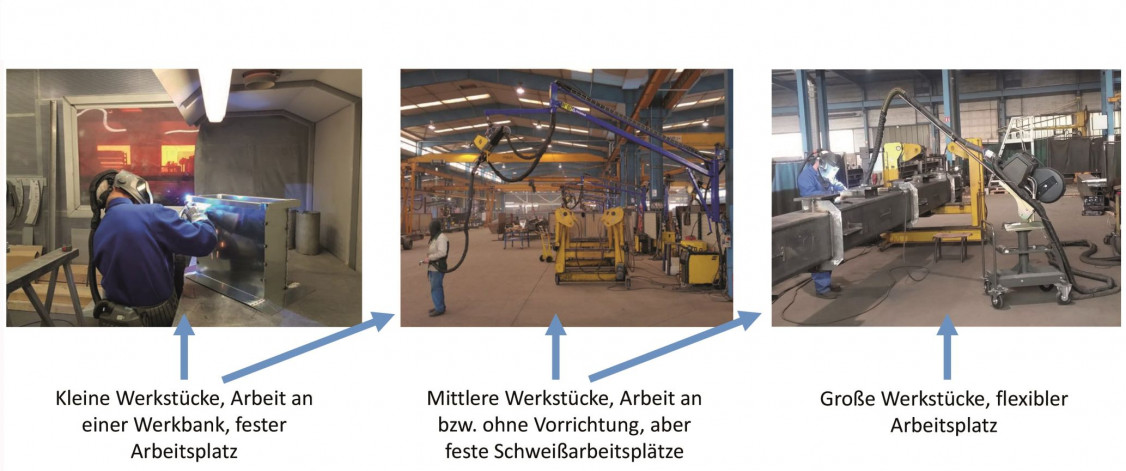 - manuelle MIG-/MAG-, WIG- bzw. Elektroden-Schweißarbeitsplätze,