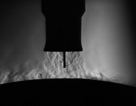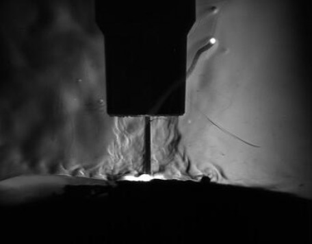 Brennen jedoch immer mehr Schweißspritzer fest und lassen sich nicht mehr lösen, muss die Gasdüse ersetzt werden. Wechselt man die Gasdüse nicht und schweißt mit den festgesetzten Partikeln weiter, entstehen Störkonturen in der Strömungsstrecke des Schutzgases. Der Gasfluss ist dann nicht mehr laminar. Bei einer Gasdüse mit Partikelansammlungen staut sich das Gas vor den Hindernissen und verwirbelt hinter ihnen. Dies wiederum kann zu Verunreinigungen des Gases führen, wenn durch eine Verwirbelung Luft aus der Atmosphäre angesaugt wird. In der Folge kommt es zur Oxidation und es bilden sich Poren und schwarze Stellen auf und neben der Schweißnaht.