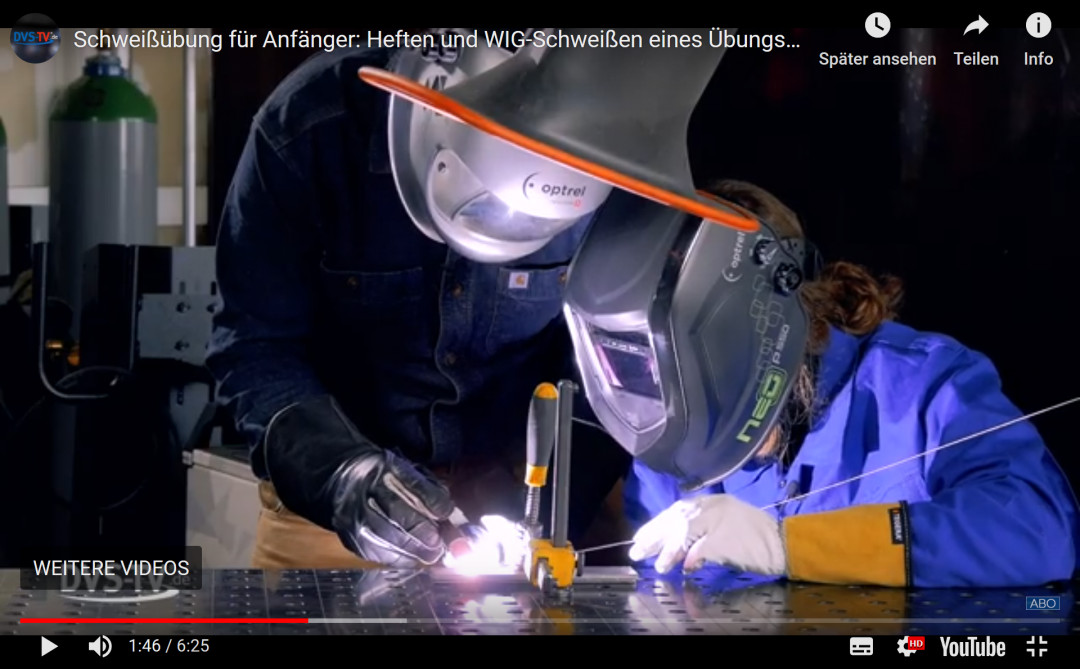 Weiter geht's mit der DVS-TV-Videoreihe zum WIG-Schweißen für Anfänger. Im vierten und letzten Teil wird am vorbereiteten, gehefteten Übungswerkstück nun eine WIG-Schweißnaht erzeugt. Nikolai Kalwe von Schweißbar Welding Solutions unterstützt im Video die ersten Schweißversuche der DVS-TV-Moderatorin Chantal Stauder und erklärt anhand der Schweißnaht-Ergebnisse ganz konkret, worauf man achten muss.