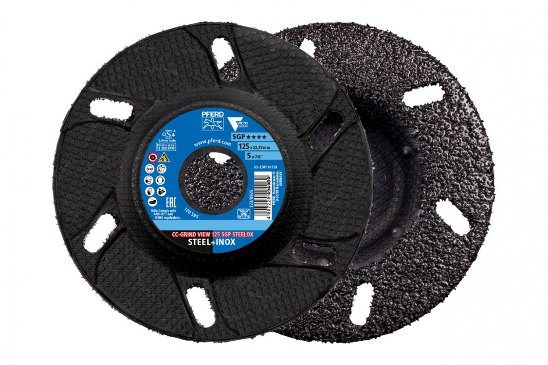Die CC-GRIND VIEW ist Teil der CC-GRIND Familie von PFERD. Die Schleifscheiben in fünf verschiedenen Ausführungen (CC-GRIND ROBUST, SOLID, FLEX, STRONG und nun auch VIEW) sind geeignet für unterschiedlichste Anforderungen. Beim Flächenschliff, in der Schweißnahtbearbeitung, beim Anfasen oder Entgraten haben sich diese Werkzeuge längst aufgrund ihrer funktionalen und ergonomischen Vorteile einen Namen gemacht.