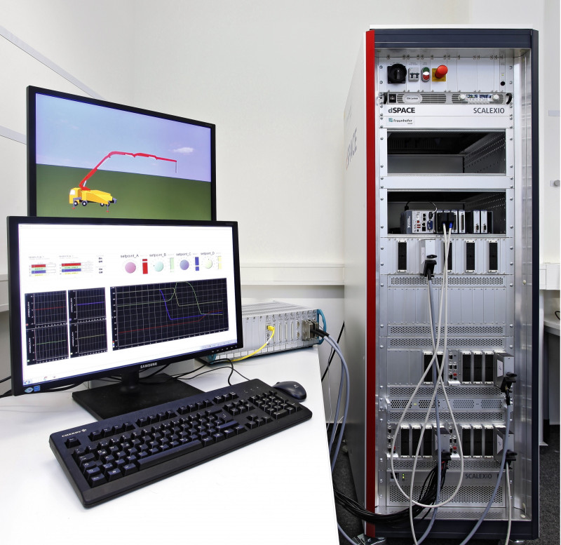 „Mit unserem HiL-Simulator sind wir in der Lage, Baumaschinen aller Art zu testen, beispielsweise unterschiedliche Kran-Typen oder auch Betonpumpen. So helfen wir bei der Optimierung der Prototypen“, erklärt Projektleiter Dr. Christian Salzig. Eine reale Testumgebung ist nicht mehr nötig.