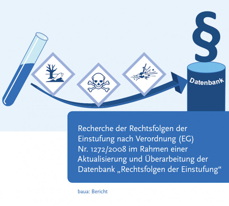 Seit der Erstellung dieser Datenbank im Jahr 2015 wurden fast alle darin enthaltenen Rechtsnormen überarbeitet. Zum großen Teil sind sie an die seit 2009 geltende CLP-Verordnung angepasst worden. Mittels einer weiteren Recherche hat die BAuA die Datenbank auf den neuesten Stand gebracht. Die Ergebnisse der Recherche hat die BAuA im baua: Bericht „Recherche der Rechtsfolgen der Einstufung nach Verordnung (EG) Nr. 1272/2008 im Rahmen einer Aktualisierung und Überarbeitung der Datenbank ,Rechtsfolgen der Einstufung'“ veröffentlicht.